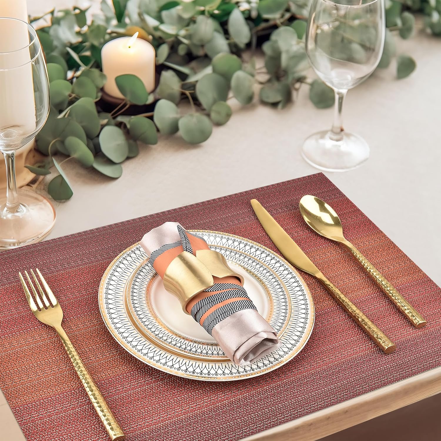 Placemats Set of 4 - Easy Clean Washable Vinyl Placemats - Wipeable Heat Resistant Table Mats for Dining Table - 17.7x11.8 Inch (4, Red Gradient)