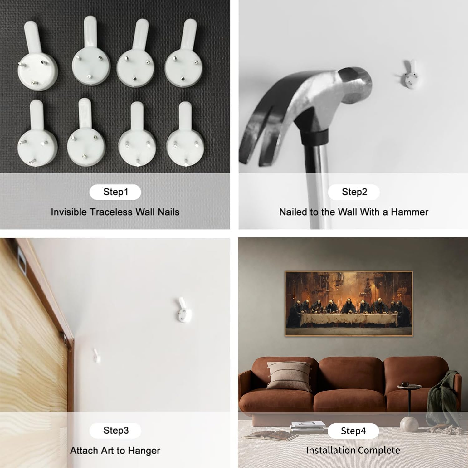 - 【Easy to Hang】 This Halloween wall art painting measures 40X20 inches (100X50 cm) and is particularly easy to hang. Just determine the position you want to hang it,fix the nails,and then hang the frame on the nails.The entire installation process only takes a few minutes