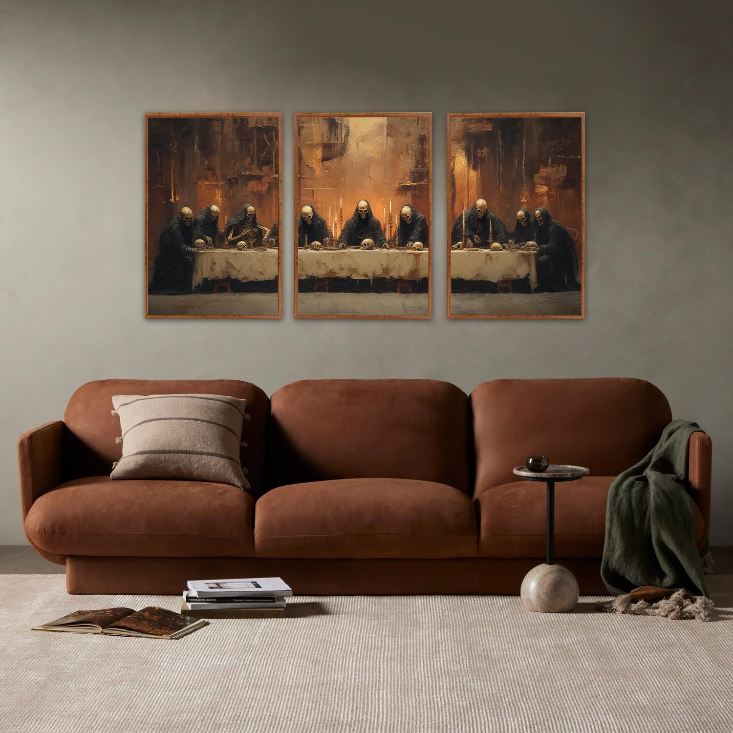 - 【Perfect Decoration】 This skull last supper wall painting is a perfect Halloween decoration.With simple colors,this mural can blend perfectly with the theme in places of different styles such as restaurants,living rooms,bedrooms,offices,guest rooms, basements,hotels,etc