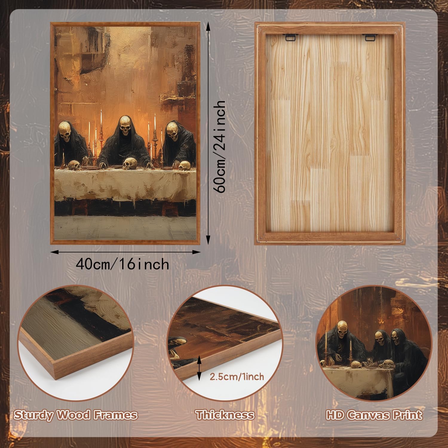 - 【After-Sales Promise】Our Halloween wall art come with excellent after-sales service.However,please note that due to changes in the display screen,the actual printed color may slightly differ from the picture.If you have any questions about the product,please feel free to contact us at any time.We are more than happy to offer you assistance