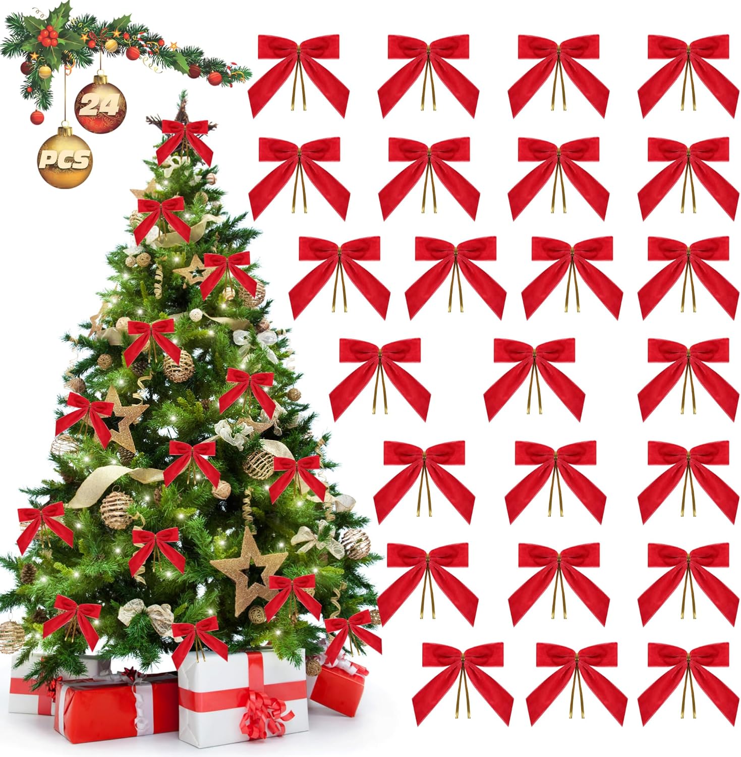 - Fade-resistant and Durable Bow Tie Set:Unlike cheap ornaments, these velvet bow ornaments are treated with color-lock technology to prevent fading under bright lights. Dust-resistant and easy to clean.Includes 24 premium velvet ornament bows with pre-attached satin loops for hassle-free hanging. making them an ideal Christmas velvet ornaments gift for friends and family.