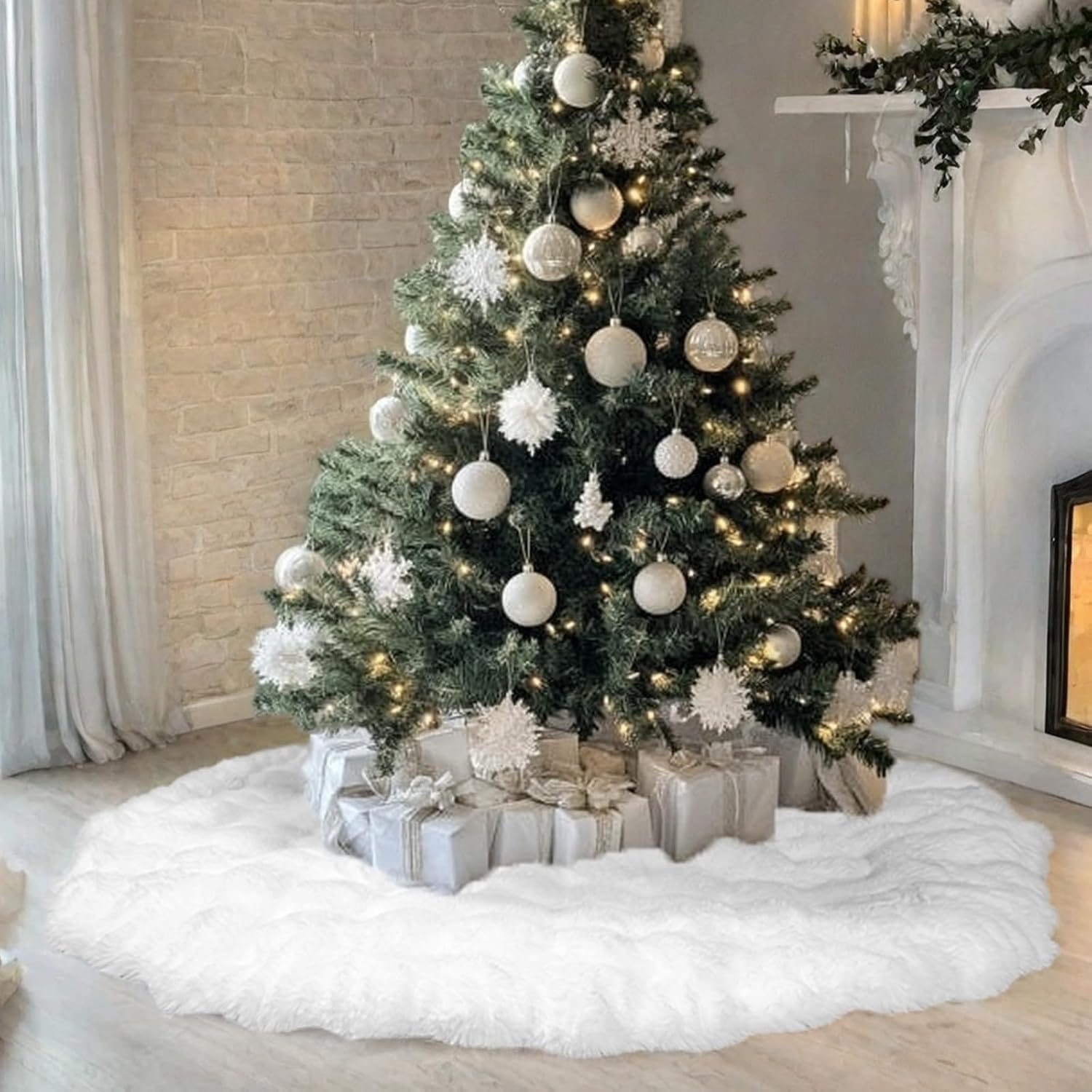 35 Inch Rabbit Fur Christmas Tree Skirt White Plush Skirt for Merry Christmas Party Christmas Tree Decoration