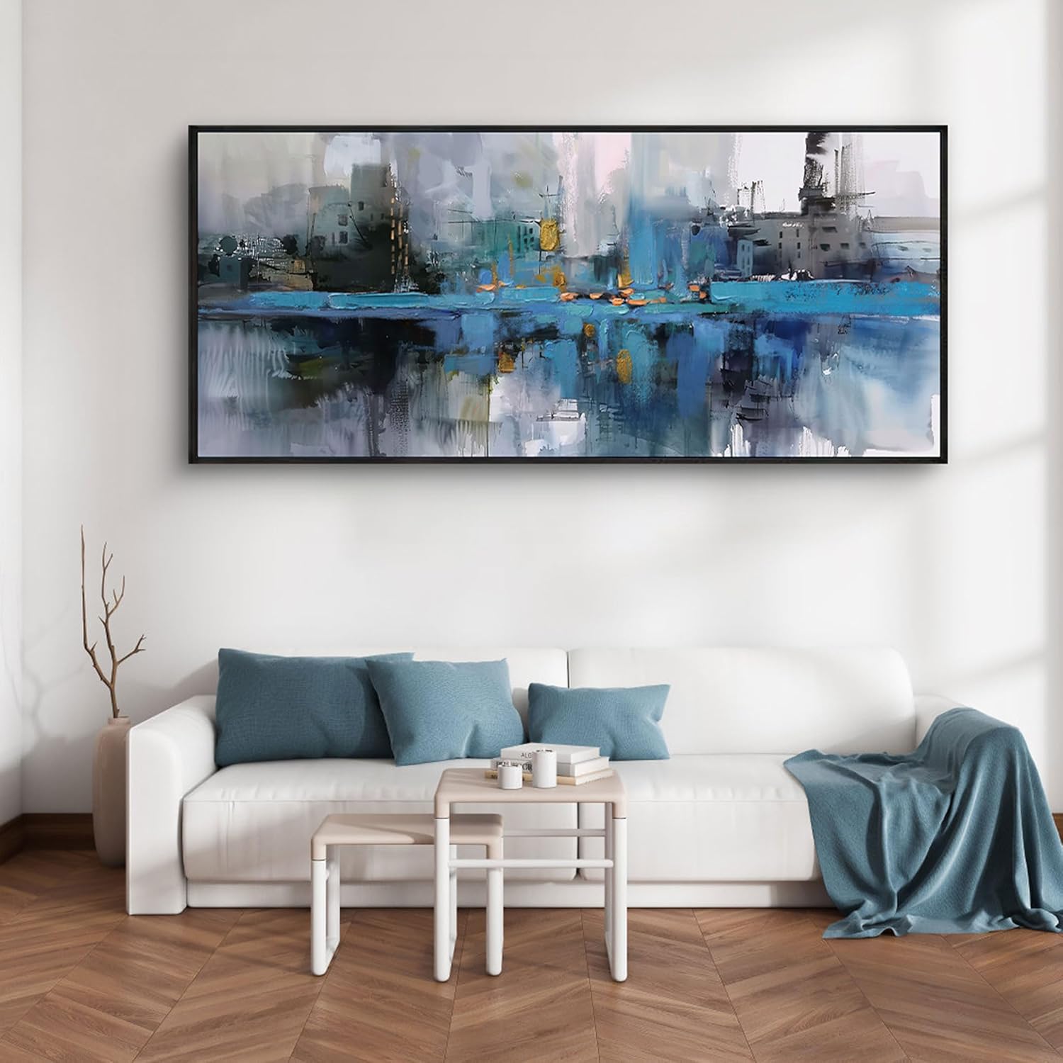 yiijeah Extra Large Canvas Frame Wall Art - Abstract Picture Large Decor for Living Room Blue and White Paintings Big Artwork for Wall Oversized Office Bedroom Home Decor