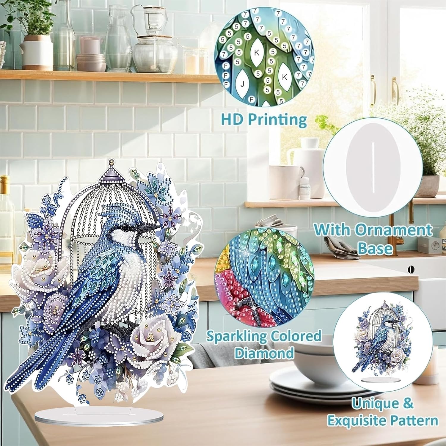 Diamond Painting Kits for Adults Beginners, 5D Full Drill Bird Crystal Art Desktop Ornament, DIY Single Sided Home Office Desk Decor, Creative Craft Gift Set with Tools