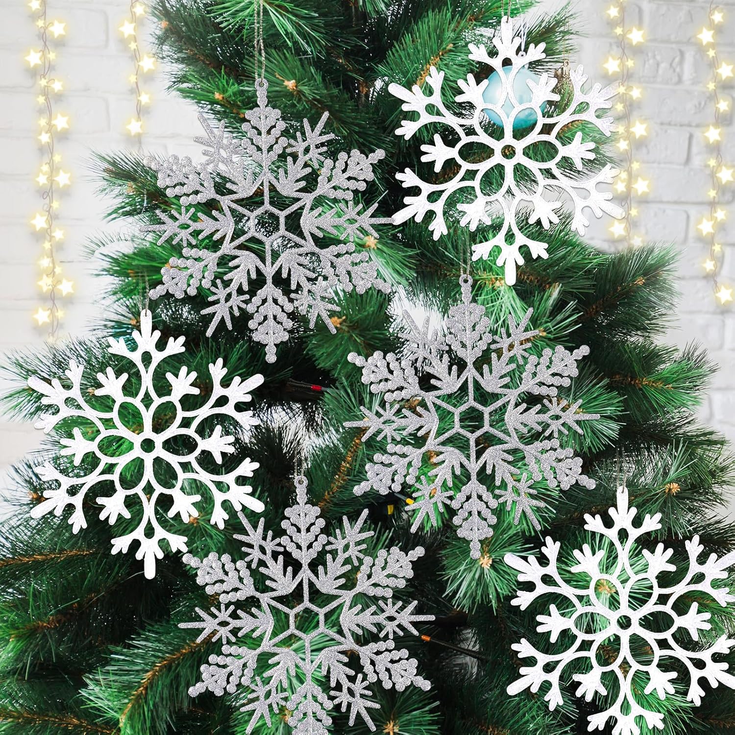 - Large White and Silver Snowflakes: Our Christmas snowflakes ornaments feature an elegant white and sliver design with stunning sparkling details for a beautiful, glamorous look. Glitter white and sliver snowflakes create a gorgeous winter wonderland display —perfect for festive seasonal decor