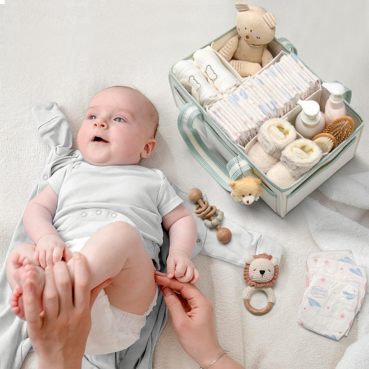 - LIGHTWEIGHT & MULTI-PURPOSE: This baby diaper caddy organizer with handle is perfect for nursery storage, car caddy, or bedside diaper changing station. Store diapers, wipes, breast pump, baby bath items, or toys—ideal for travel and everyday use as baby room organizer and storage