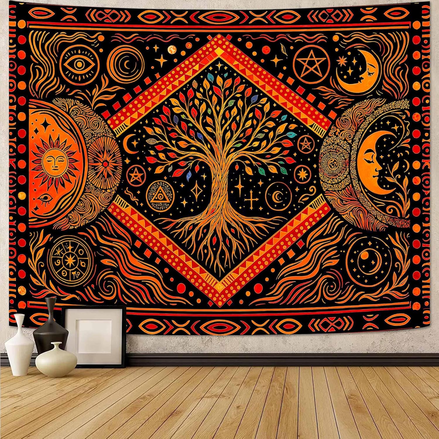 Lunerfex Tree of Life Sun Moon Stars Wall Tapestry, Cosmic Harmony Symbol Tapestries for Home Decor, Mystical Tapestry 60x44 Inch