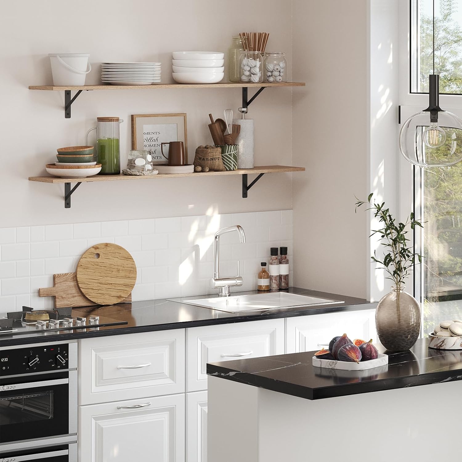 - 【Wide Application】Extra long shelves for wall storage is gospel of small family to enjoy the tranquility of home. Large floating shelves allow you to store books, games, decorations, plants, towels, photos, collectibles etc. Even to be an ideal play area for your cats. Create additional storage in living room, bathroom, bedroom, closet, balcony, study, kitchen, laundry, bar area, pantry and office