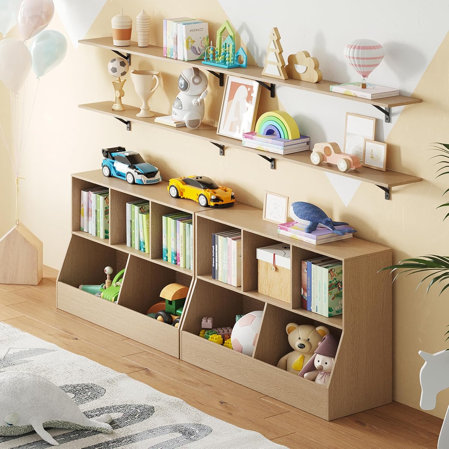 - 【Sturdy & Durable】Made of sturdy particleboard and metal brackets for safe and durable uses. The metal support shelves of DINZI LVJ are thicker than others for added stability and stronger load-bearing capacity(up to 33lbs). Extra anti-toppling device ensures the wooden shelves without deformation