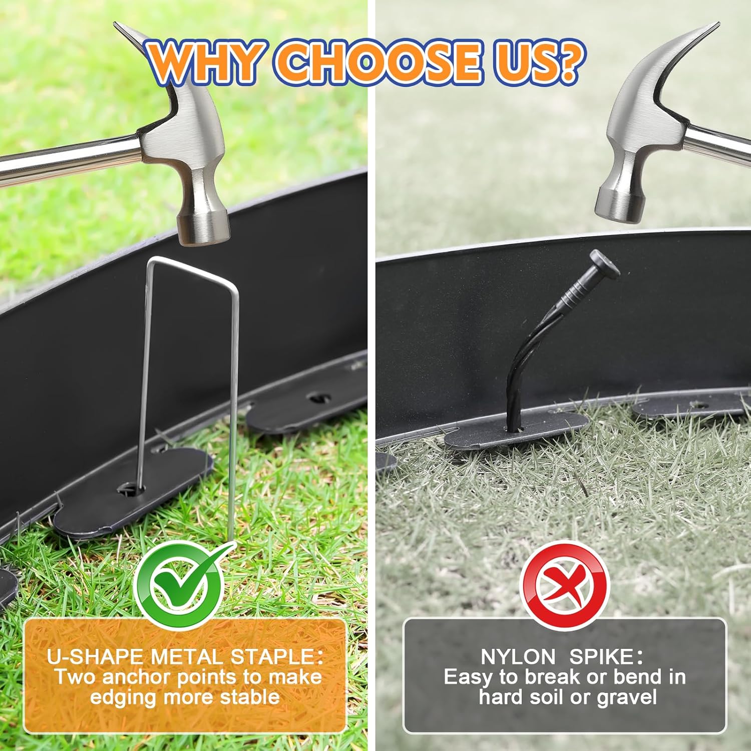 - 【Sturdy and Flexible】The landscape border kit is made of High quality plastic , Sturdy and flexible, capable of carrying out the required design in your landscape courtyard. Our metal nails adopt a U-shaped design, which is more powerful than traditional plastic nails