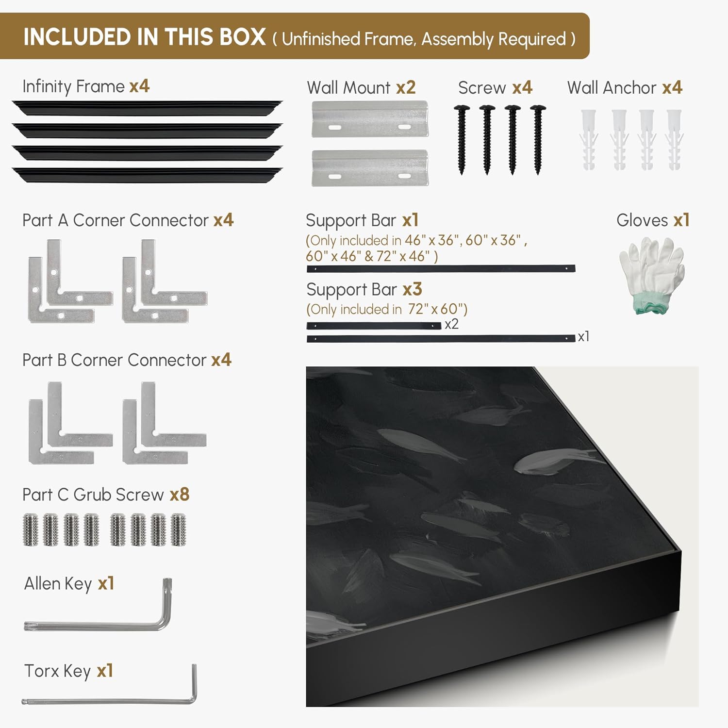 - Assembly Required: The artwork comes with the frame components unassembled. Don¡¯t worry - setup is straightforward and tool-friendly. For best results and accurate alignment, we recommend two people to ensure a smooth assembly and a stable, secure wall mount.