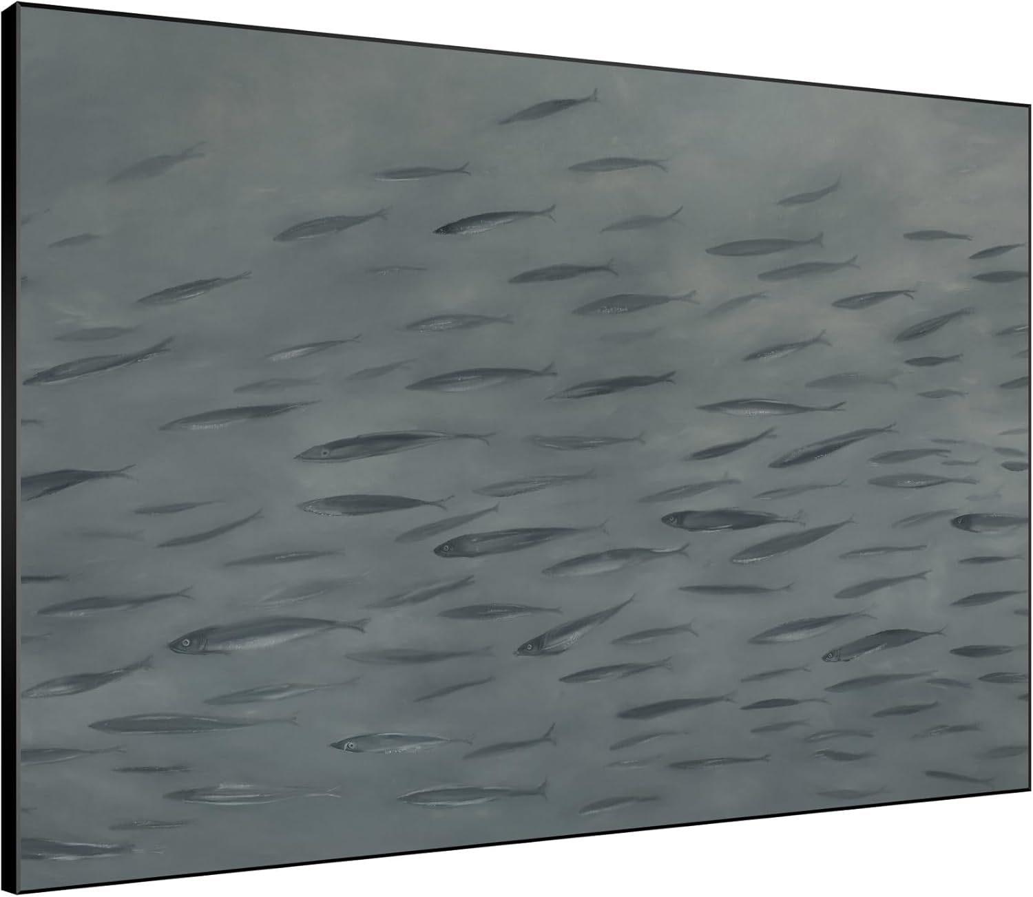 SIGNWIN 46"x60" Extra Large Framed Wall Art Gray School of Fish Minimalist Ocean-Inspired Marine Life Illustration for Home Living Room Bedroom Decor (Frame Assembly Required)