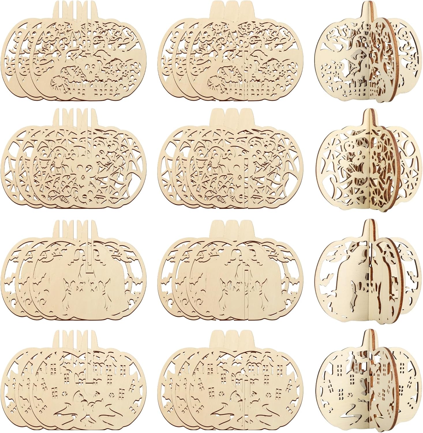 COCHIE DIY 3D Halloween Pumpkin Wood Crafts to Paint for Kids Adults, Paintable Unfinished Wooden Slices for Craft, Cutouts Ornaments for Painting Decorations (24 PCS)
