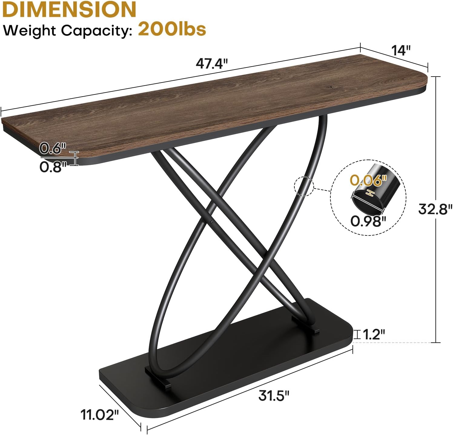 - 【Versatile Rustic Entryway Table】- Measuring 47.44 x 13.98 x 32.80 inches, this rustic console table is perfect for entryways, hallways, or behind couch. The 13.98-inch depth provides ample space to display décor and showcase your unique style
