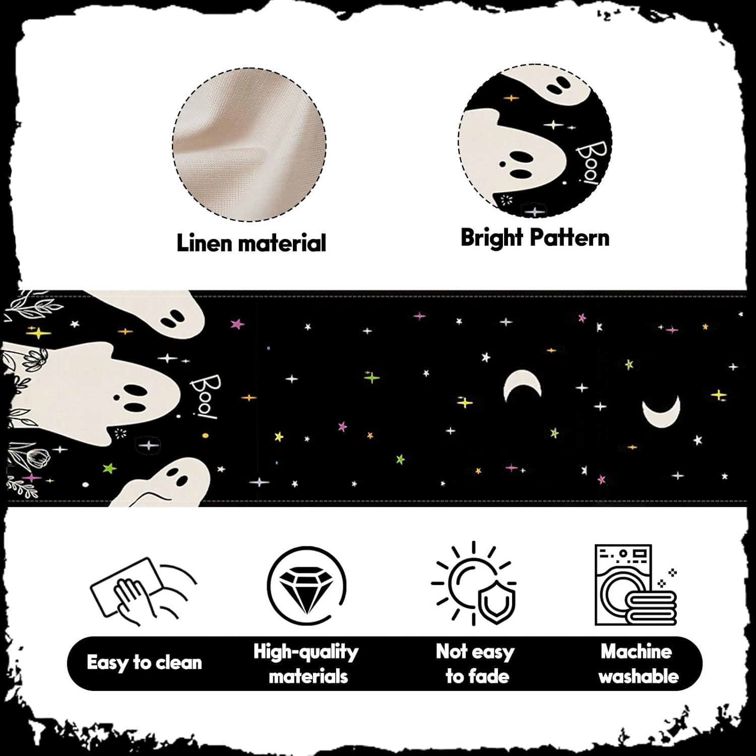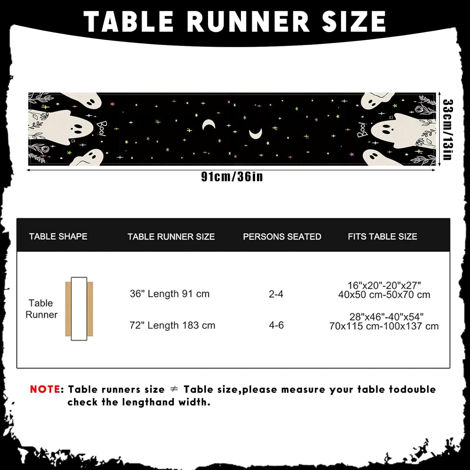 - Package Content: Includes 1 Halloween table runner (13x36 inches), printed with ghost patterns and classic Halloween elements, instantly turning your dining table into the focus of the holiday