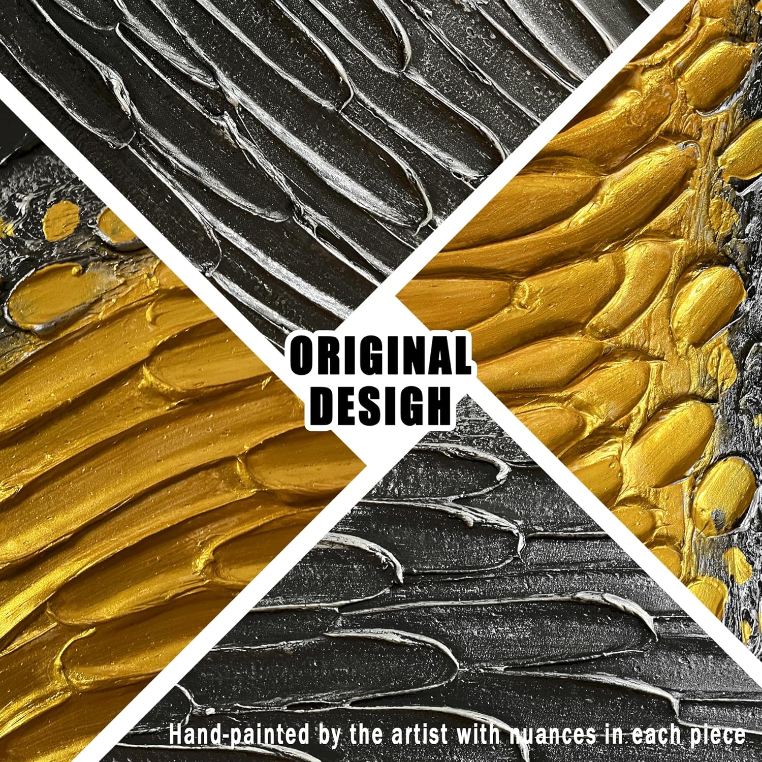 - 【Canvas Mural Size】Titled "black and gold abstract" The size is 58" x 29". Since each painting is hand-painted, the actual painting may differ slightly from the product image. Due to different monitor brands, the actual wall painting color may be slightly different from the product picture.