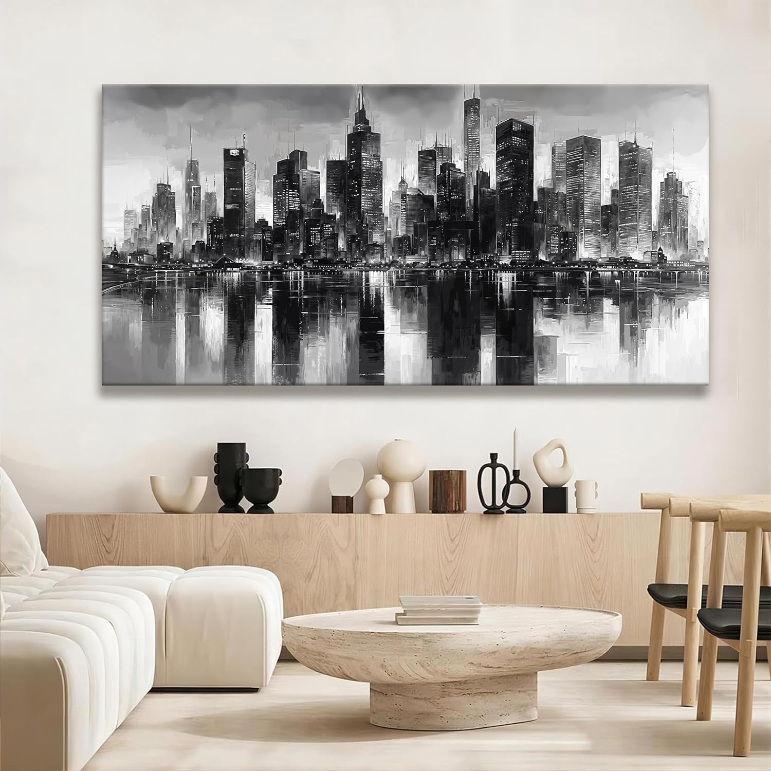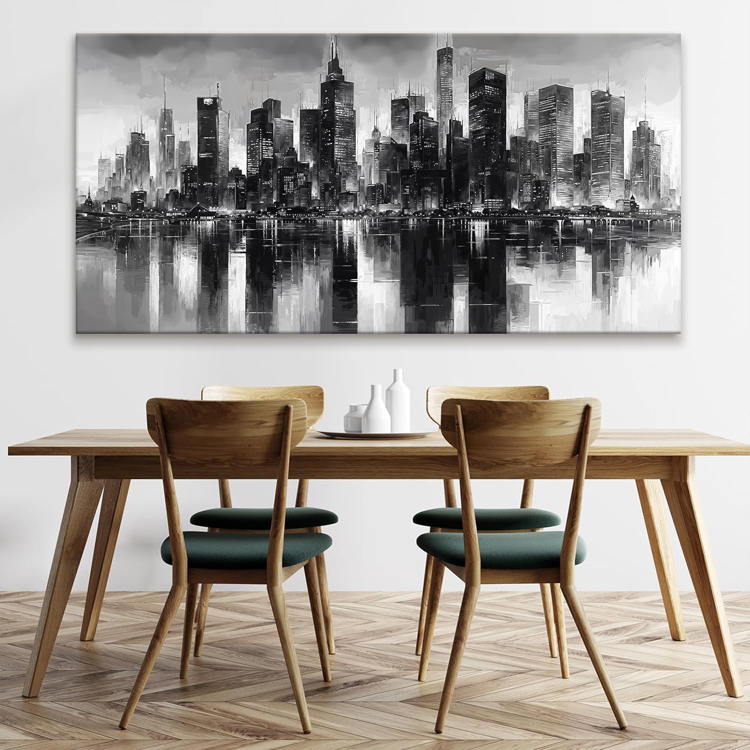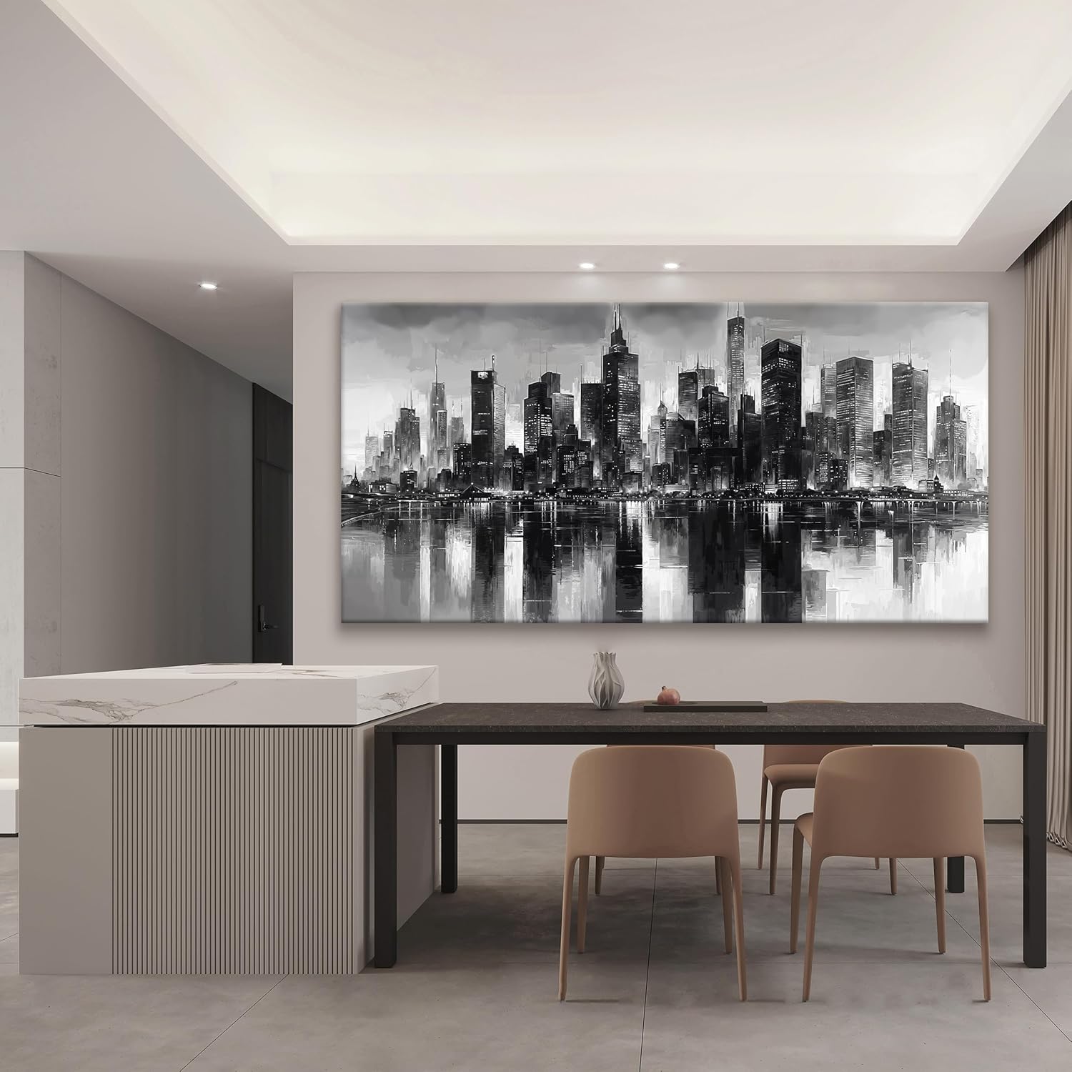QSQ New York City Wall Art Brooklyn Bridge Wall Art For Living Room Office Bedroom Cityscape Canvas Art Wall Decor Paintings Picture For Bedroom Home Wall Decor Chicago Artwork For Walls 29 × 58 In