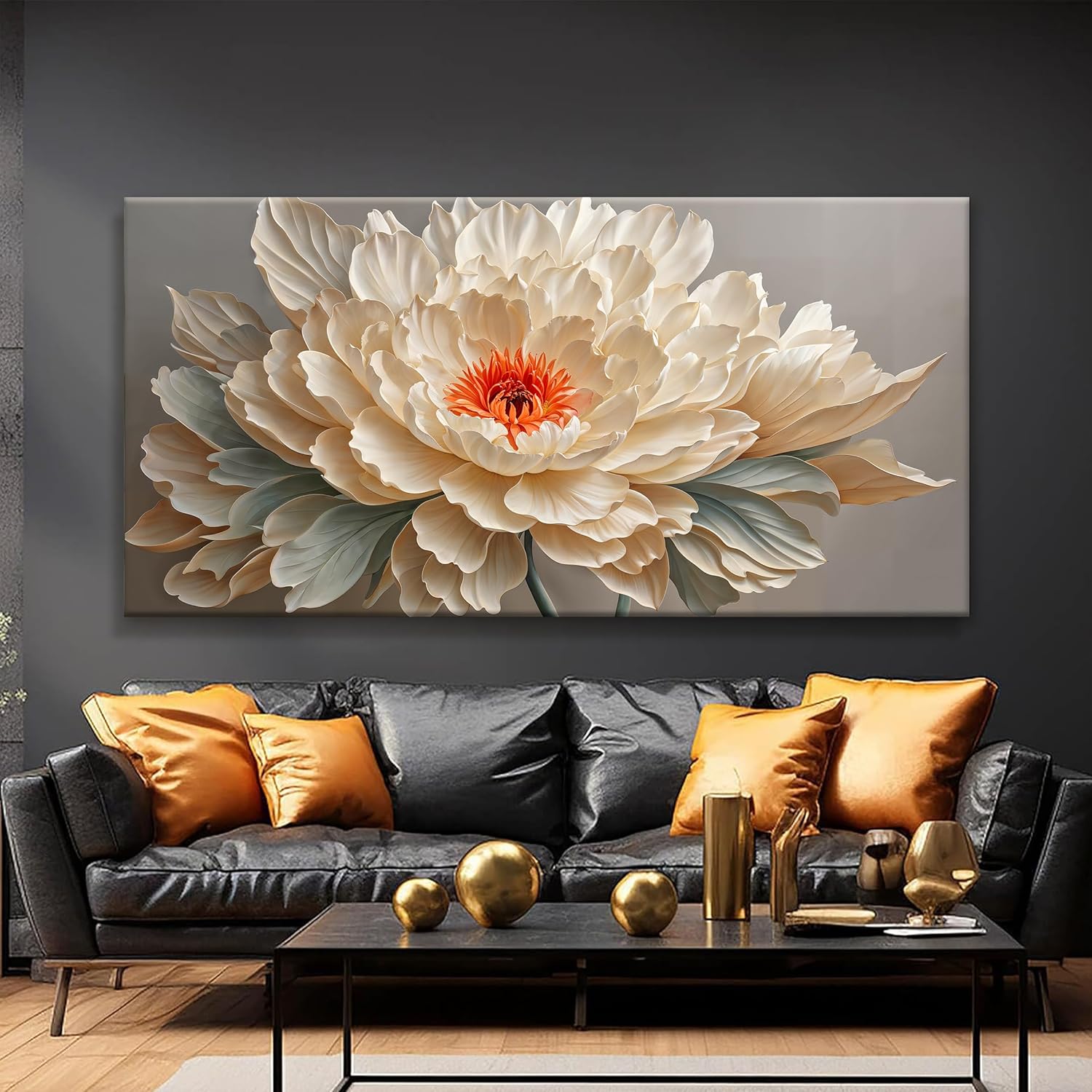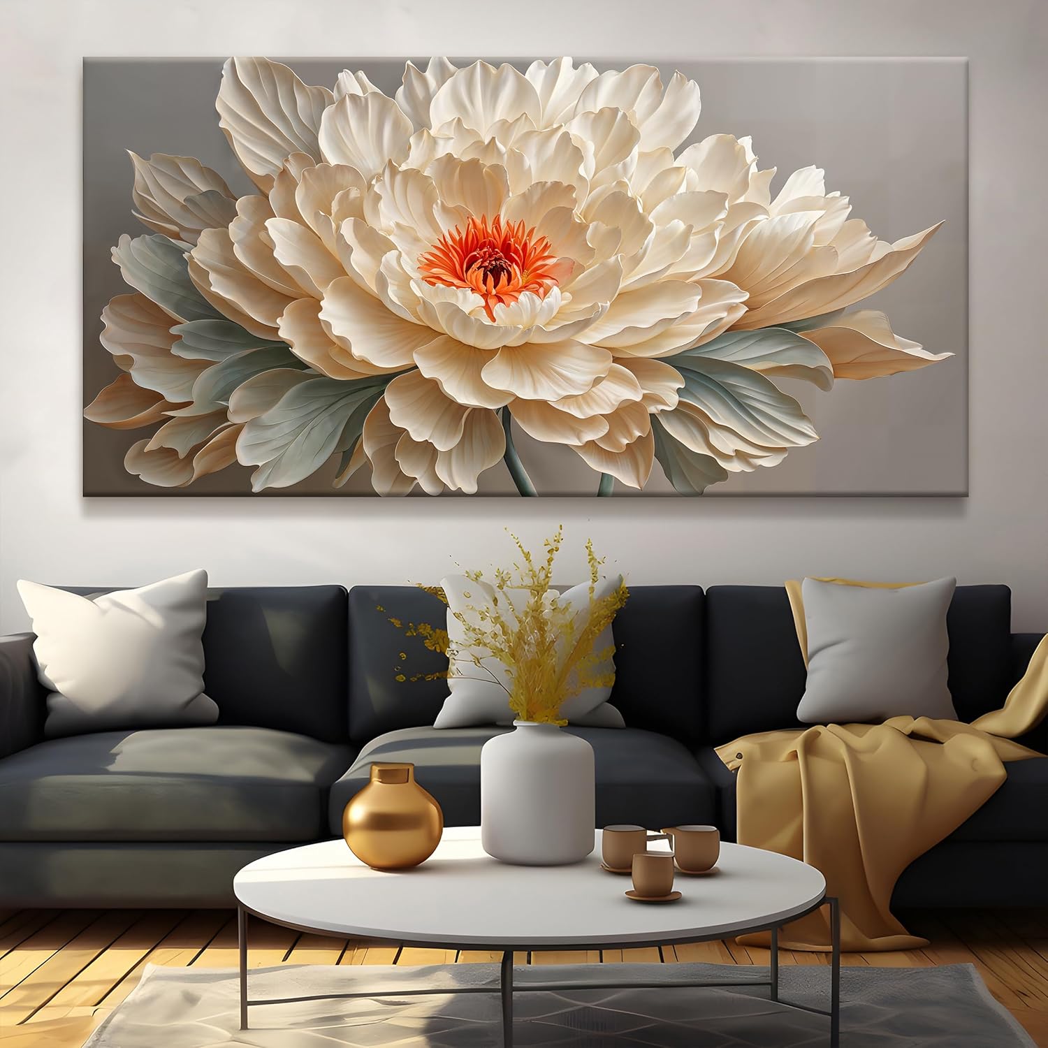 QSQ Large Wall Art For Living Room Yellow Floral Wall Art Decor Modern Canvas Art Wall Decor 29" X 58" Painting White Flower Wall Art For Bedroom Apartment Office Dining Room Home Wall Decoration