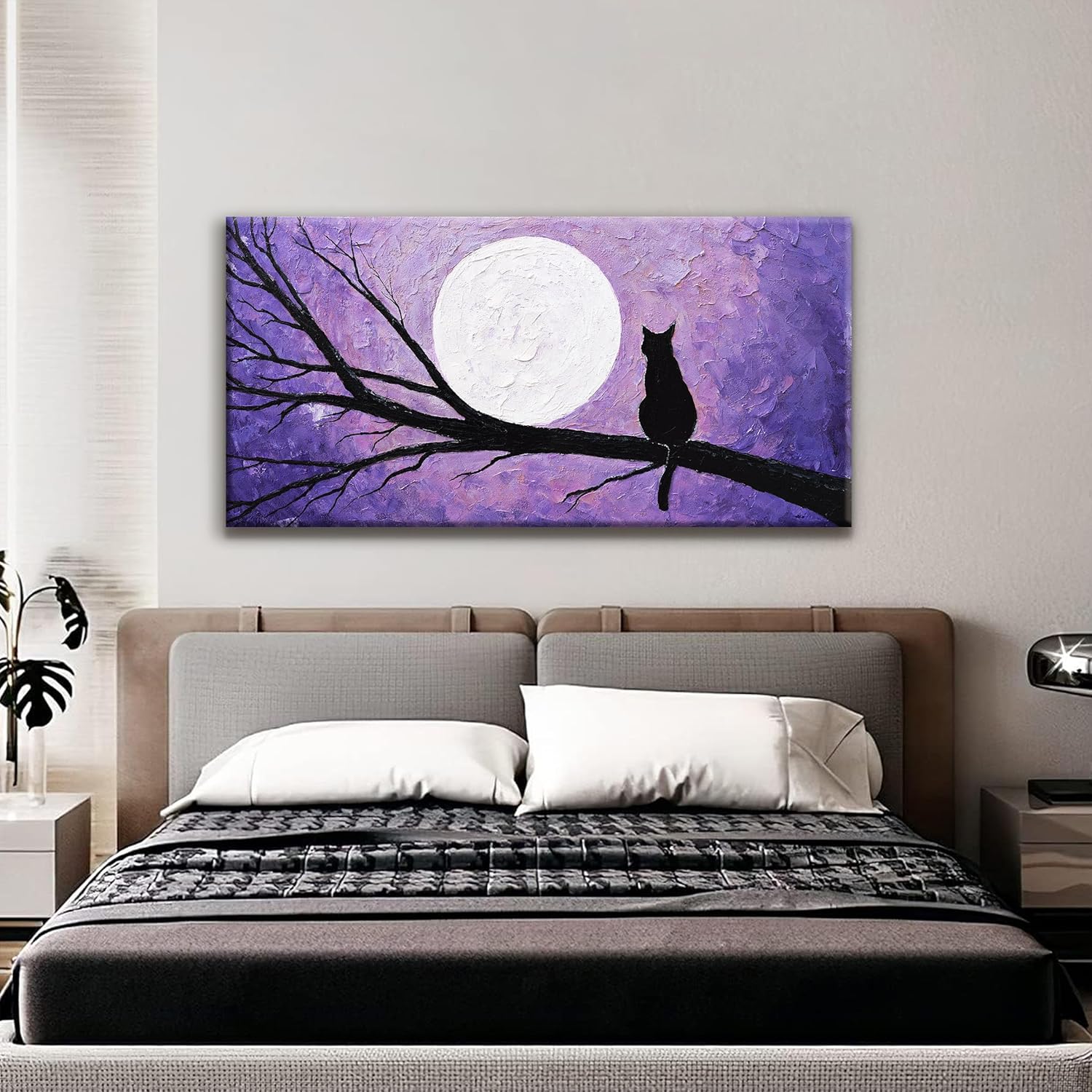QSQ Cat Wall Art Prints Painting Canvas Art Wall Decor Funny Monet Cat Under The Moonlight Abstract Wall Art Posters Picture For Bedroom Bathroom Office Home Decor Aesthetic 20" × 40"