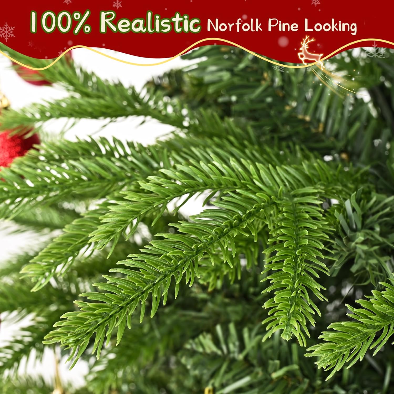 - 【Realistic And Full Design】In search of a realistic and evergreen Christmas tree? Our artificial Norfolk Pine tree precisely fulfills your desire! With 136 carefully crafted branches, impeccably mimic the natural shape of a Norfolk pine, presents a naturally expanding shape. Equipped with 51 Christmas ornaments, present a fuller appearance, offers the possibility of DIY for your decoration.