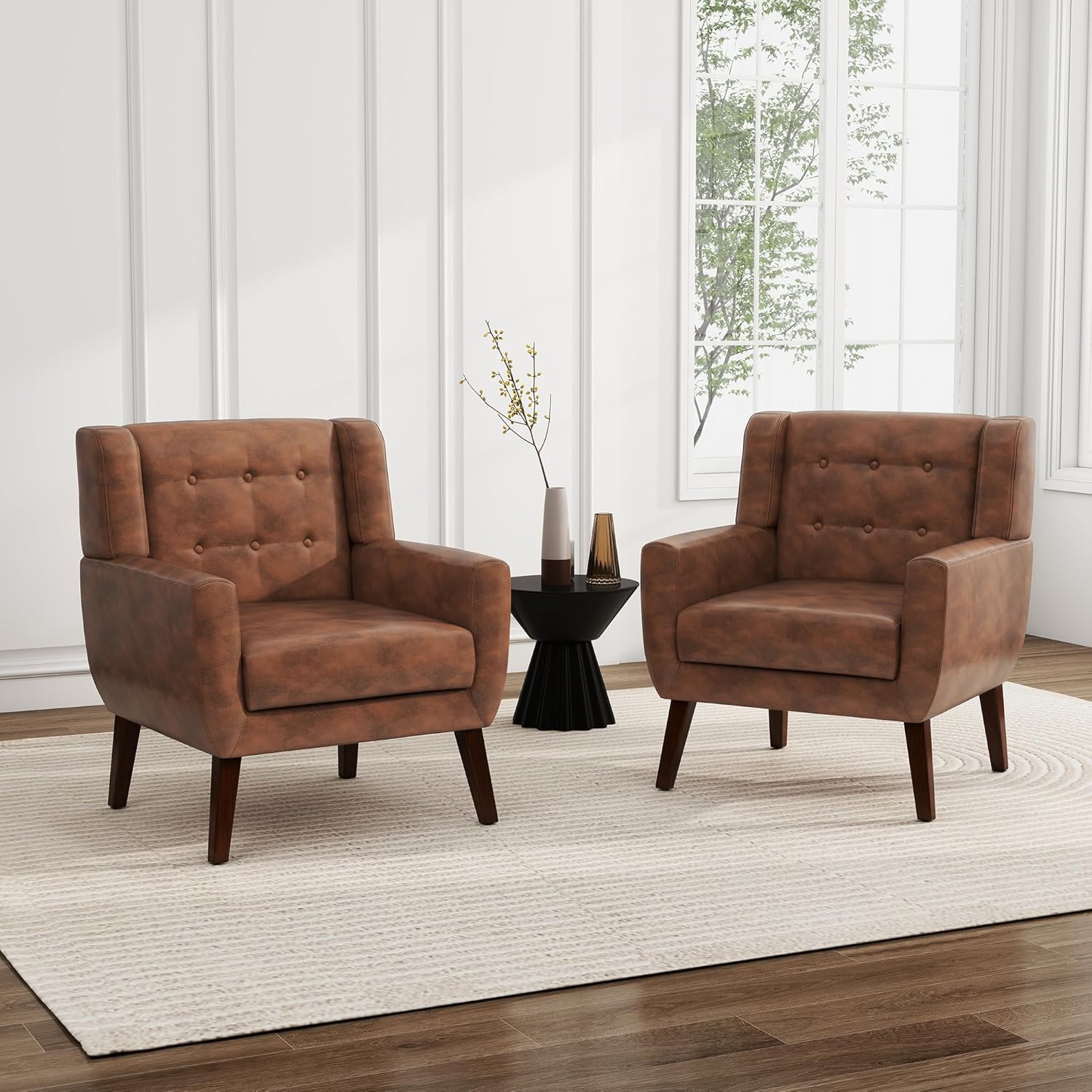UIXE Faux Leather Accent Chair, Morden Upholstered Armchair for Living Room, Button Tufted Arm Chair Comfy Single Sofa Bedroom Side Reading Seat - Coffee