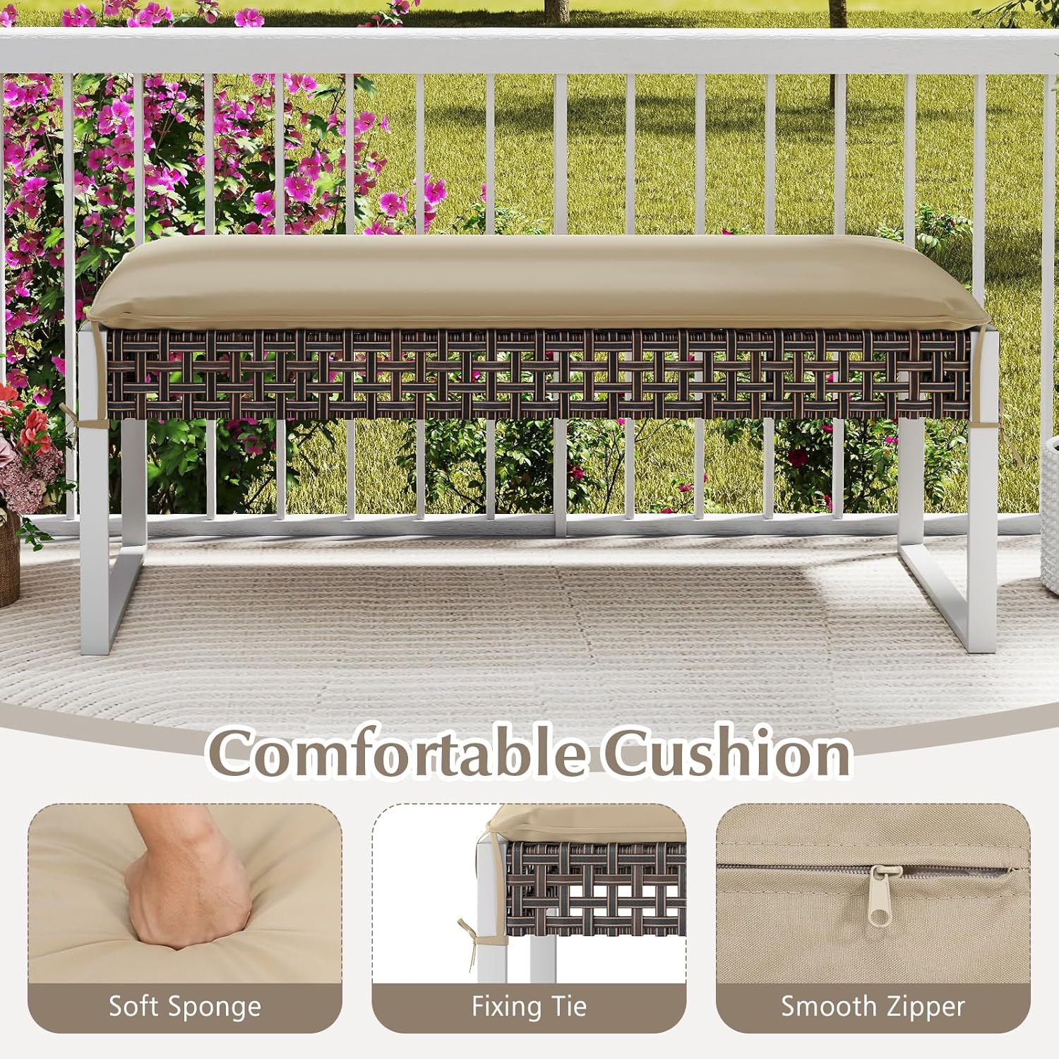 Tangkulka Outdoor Ottoman, Patio Rattan Heavy Duty Wicker Footrest with Soft Cushion & Metal Frame, Extra Seating, for Porch, Backyard, Lawn and Poolside (1)