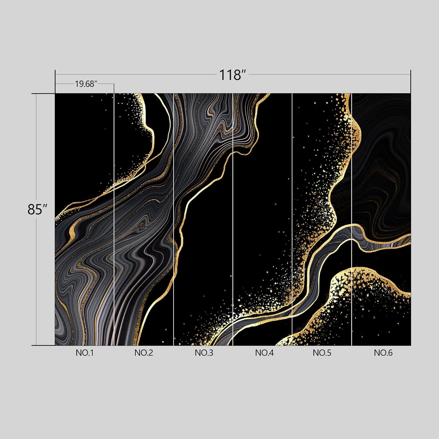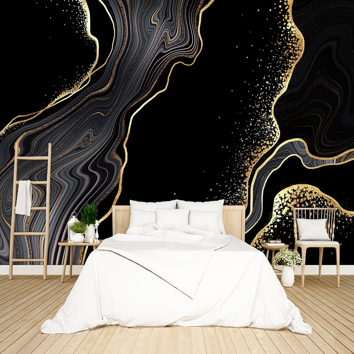 Black and Gold Marble Wallpaper Peel and Stick Wall Mural for Bedroom Living Room - 85"x118"