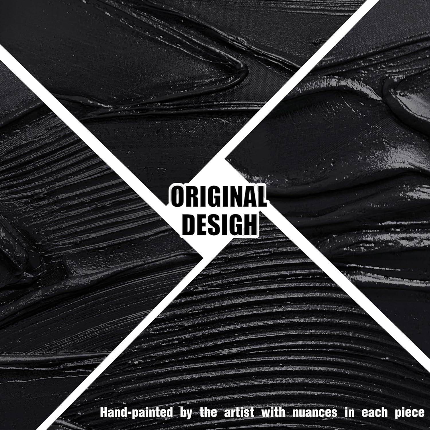 Modern Oil Painting Wall Art For Living Room Black Abstract Canvas Wall Art For Office Huge Artwork For Hotel Size 36 x 72 Inch