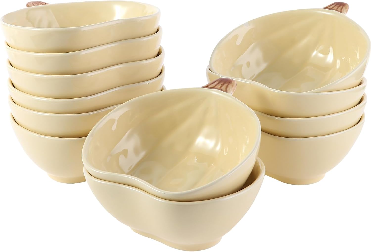 Kolewo4ever 12 Pieces Fall Ceramic Pumpkin Bowl 6 Ounces Ramekins Small Pumpkin Shaped Bowls Orange Dinnerware Decoration for Fall Halloween Serving Dip, Sauce, Condiments,Snack (Yellow)