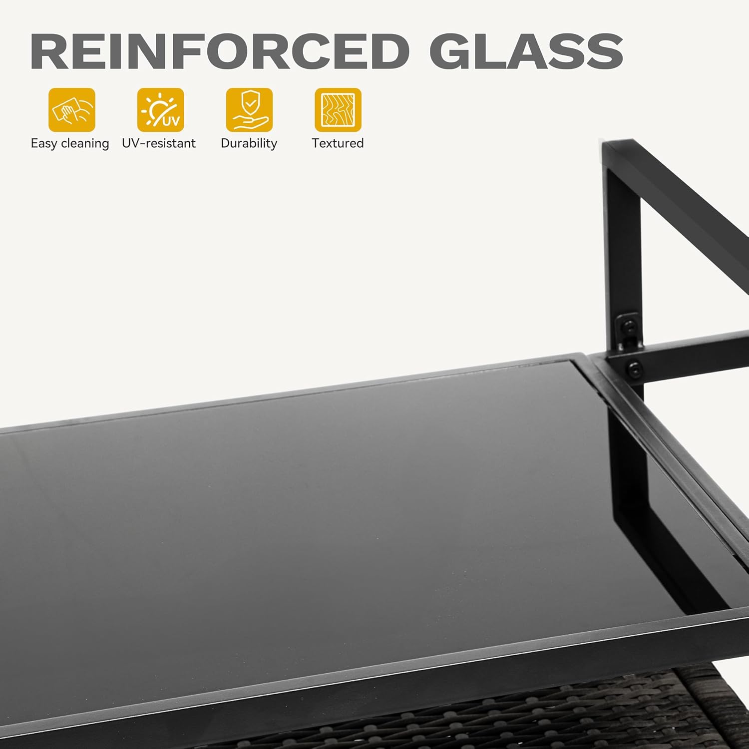 - Robust and elegant: Crafted from durable all-weather wicker, this outdoor storage table is denting for lasting longevity; Its hand-woven wicker exterior, coupled with a glass top, adds rustic charm to your outdoor decor
