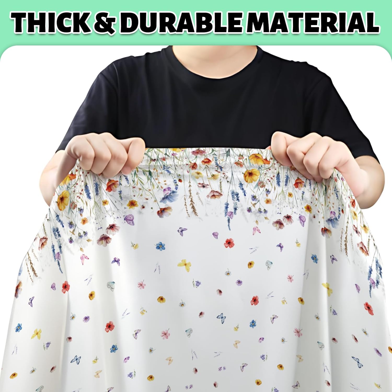 - Premium PET Material: Made of thick, waterproof plastic that resists tears and spills - significantly sturdier than flimsy disposable table covers.