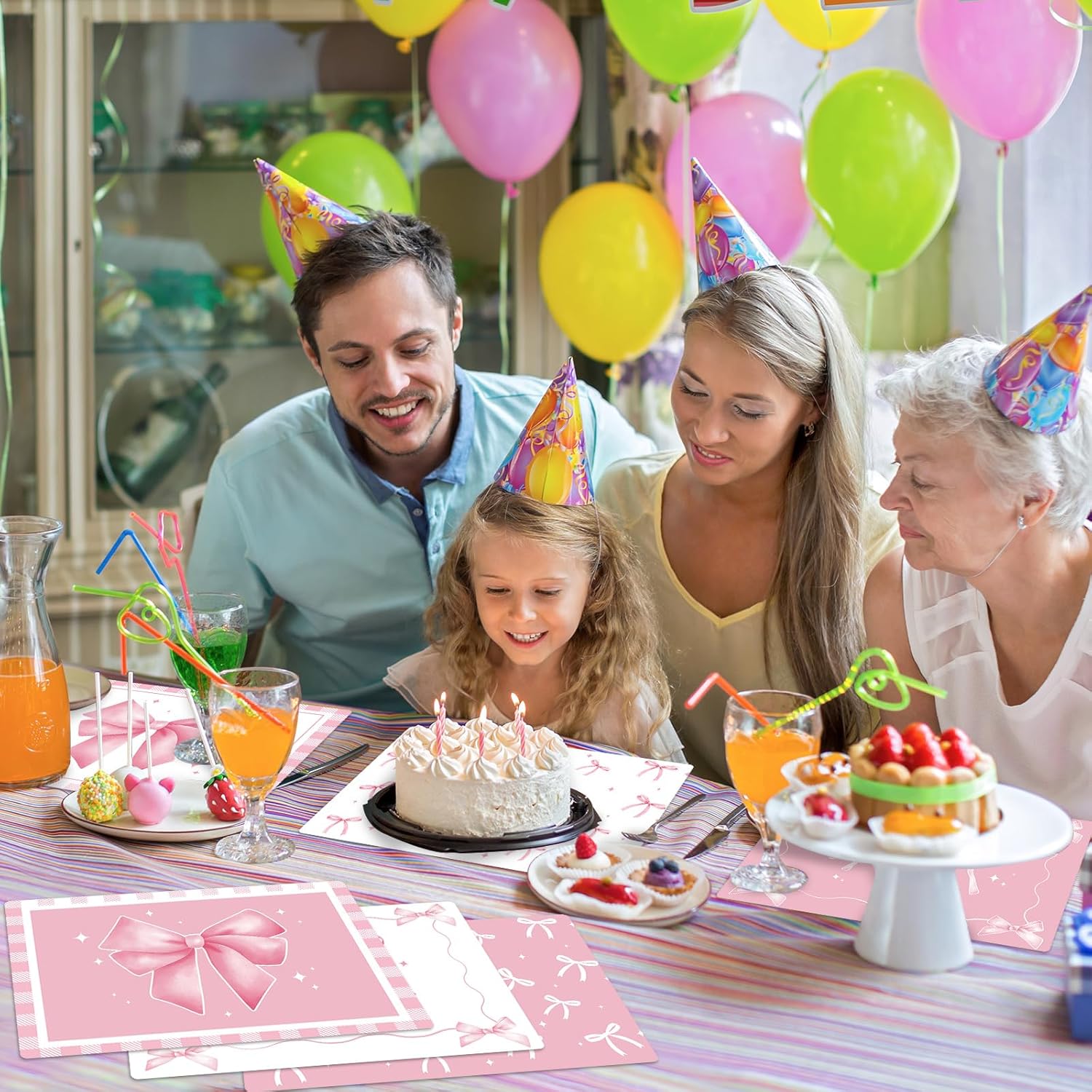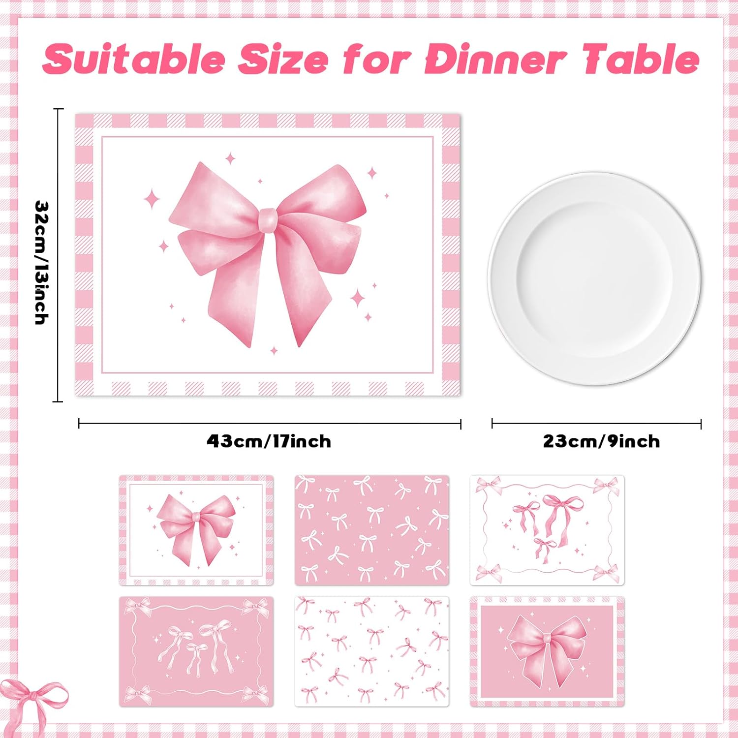 - Widely Applied: Our pink bow theme place mats are versatile and suitable for a wide range of occasions. Whether you’re setting the table for a Wedding, Bachelorette party,Baby Shower, Birthday Table Setting, these mats are the ideal choice. As part of pink bow party supplies, they add a touch of elegance, charm, and a cohesive pink bow theme to any setting, enhancing the overall ambiance and making your event truly memorable