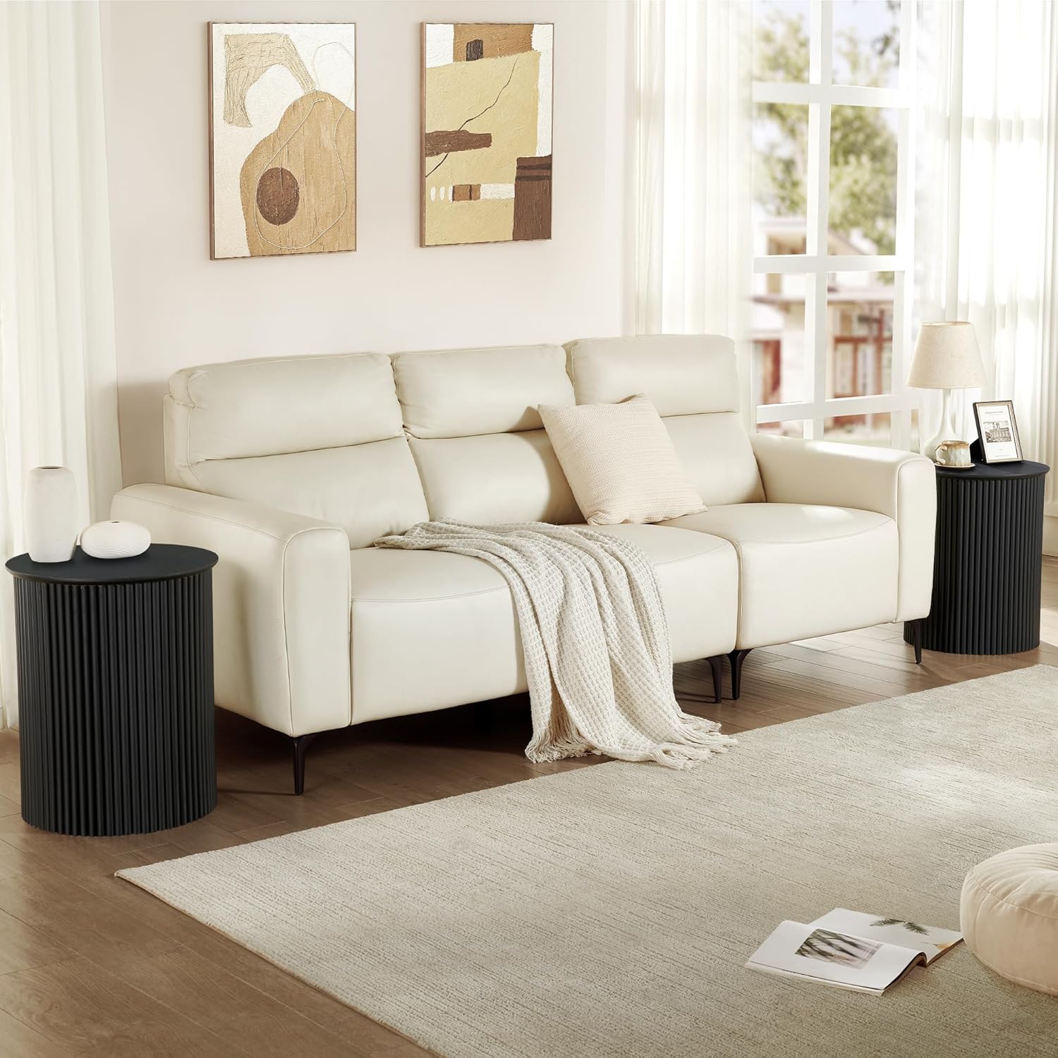 - Mid Century Night Stand: The fluted round end table showcases a sculptural cylindrical silhouette and rich Rustic Walnut finish, blending classic mid-century charm with contemporary style. Its artful vertical fluting creates depth and visual interest, and the smooth, rounded top provides a refined surface for décor accents or a lamp, creating a stylish accent for your bedroom or living room.