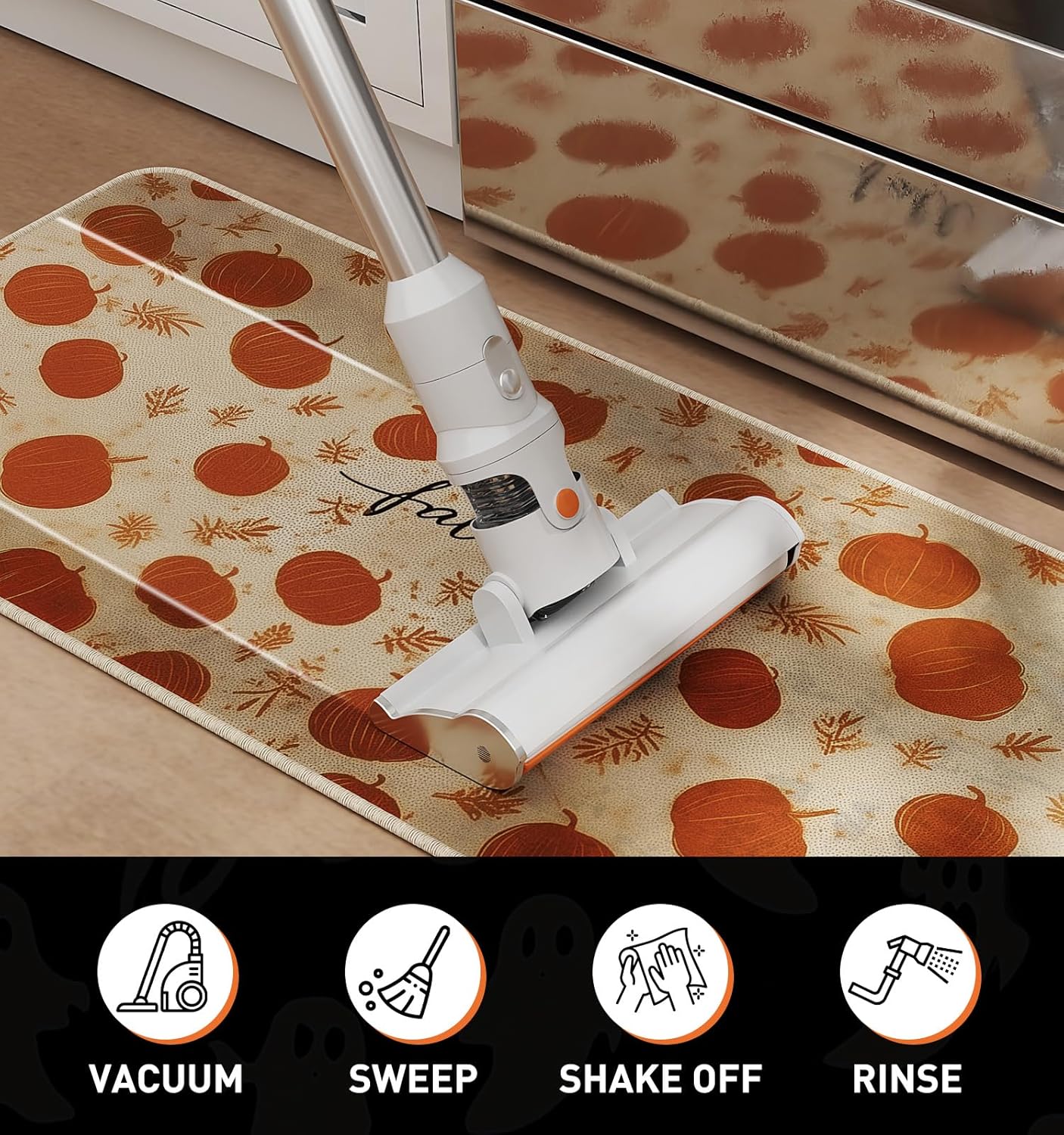 - 【Versatile Sizes for Every Space】Measures 17" x 29" and 17" x 47", our mat fits seamlessly in kitchens, dining areas, or entryways. Use the smaller size by the sink or stove, and the longer one for high-traffic spots to tie your Halloween theme together.Our stylish kitchen mats make a beautiful addition to your kitchen, dining room, laundry rooms,craft rooms and office spaces