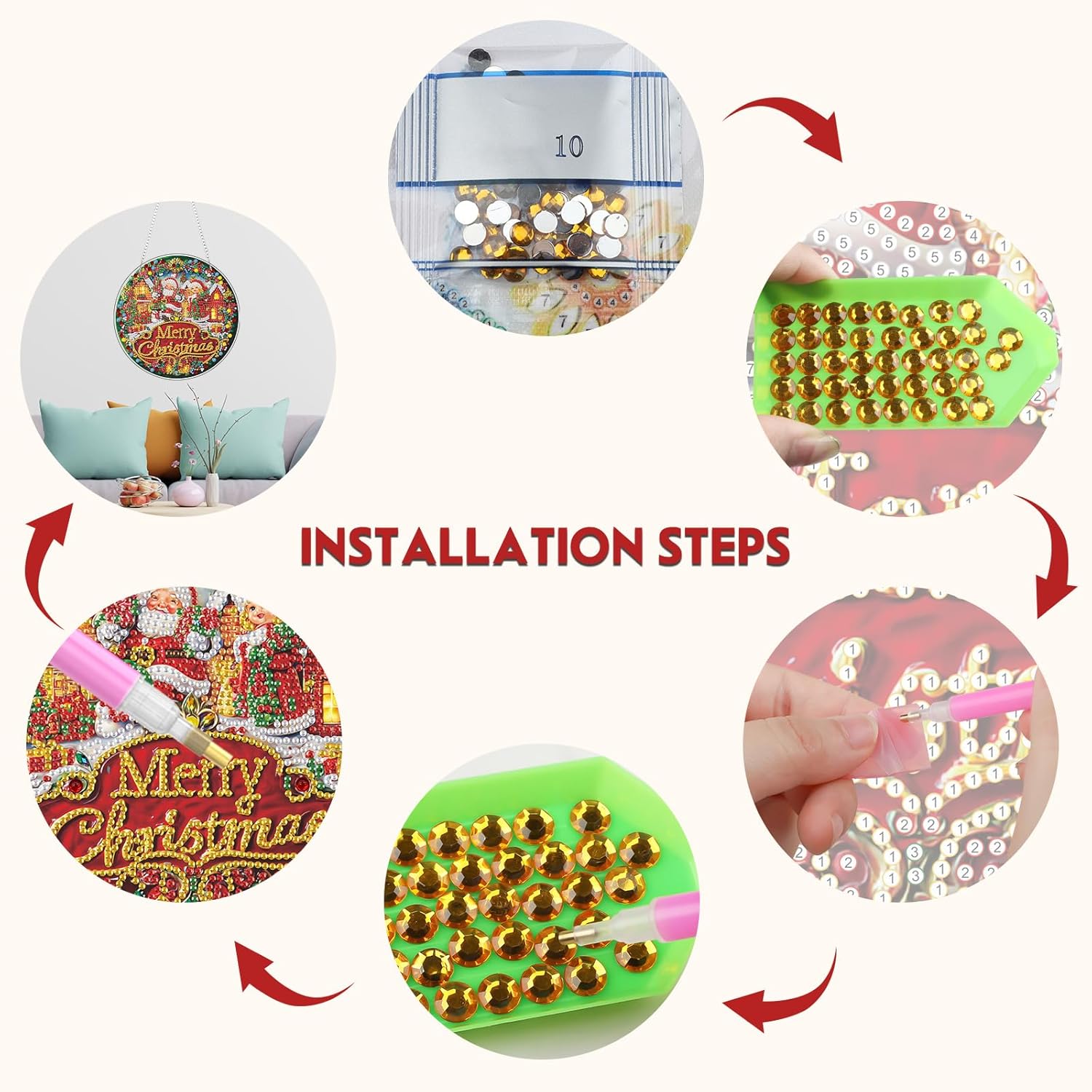 - What You’ll Receive: Includes numbered acrylic hanging plate x1, iron chain x1, diamond pen x1, tray x1, wax pad x1, plenty of diamonds, and a beautiful box—everything you need to start your diamond art project