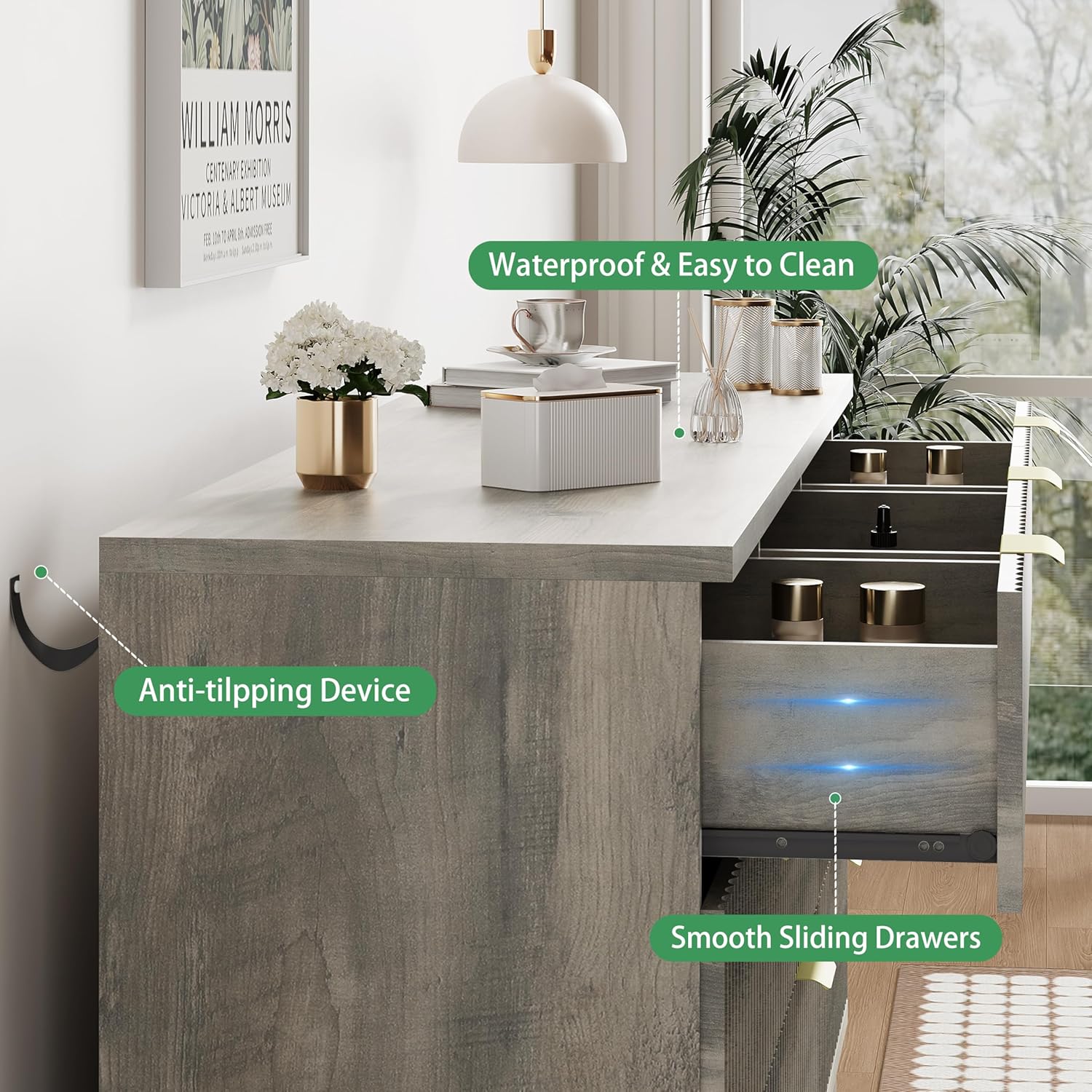 - 【Solid Material & Study Construction】The dressers & chests of drawers are constructed from optimal MDF, P2 engineered wood and coated metal handle which not only has exquisite texture, but also ensure long-term use and scratch resistant. Each drawer holds up to 35 lbs or 15 lbs and the thickened tabletop can support up to 150 lbs. For easy cleaning, just wipe with damp cloth and get it air-dried