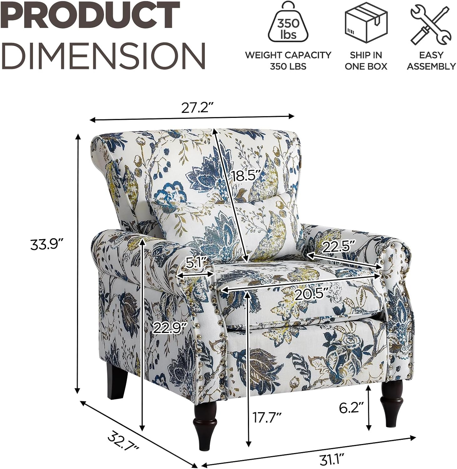 - Durable Floral Accent Chair: Crafted with skin-friendly floral fabric and soft foam certified by IAF and ISO for quality assurance, this armchair wraps you in cloud-like comfort. Its sturdy hardwood frame, sourced sustainably and bearing the FSC certification, along with solid wood legs, supports up to 350 lbs, ensuring long-term stability. Tested rigorously to meet ASTM standards, this accent chair is a reliable addition to your living space, built to withstand daily use in homes or commercial settings