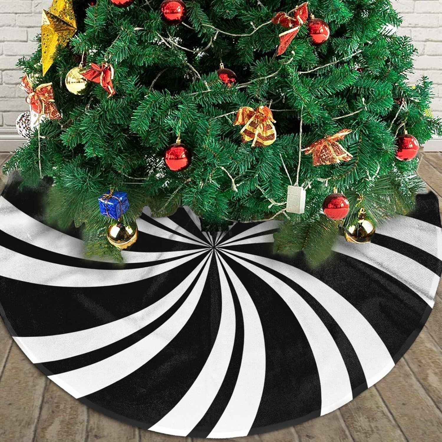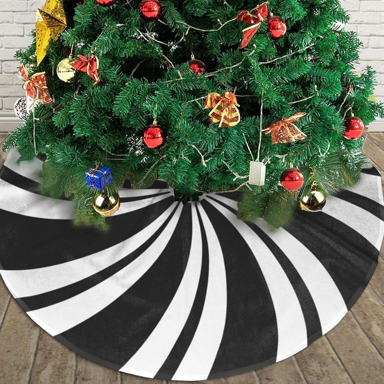 Christmas Tree Skirt,Mint Sugar Double Swirl Candy Black Xmas Tree Skirt Rustic Farmhouse Tree Skirt for Christmas Decor Xmas Holiday Home Party Decorations48