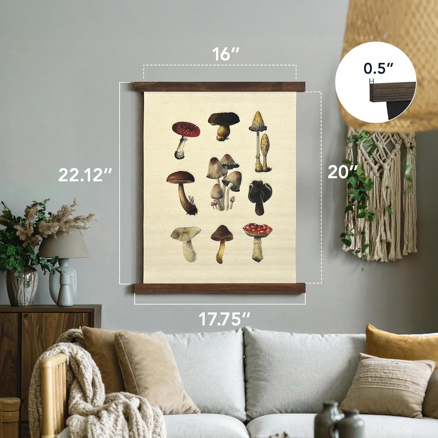 American Art Decor Hanging Linen Mushroom Tapestry Vintage Wall Art Hanging