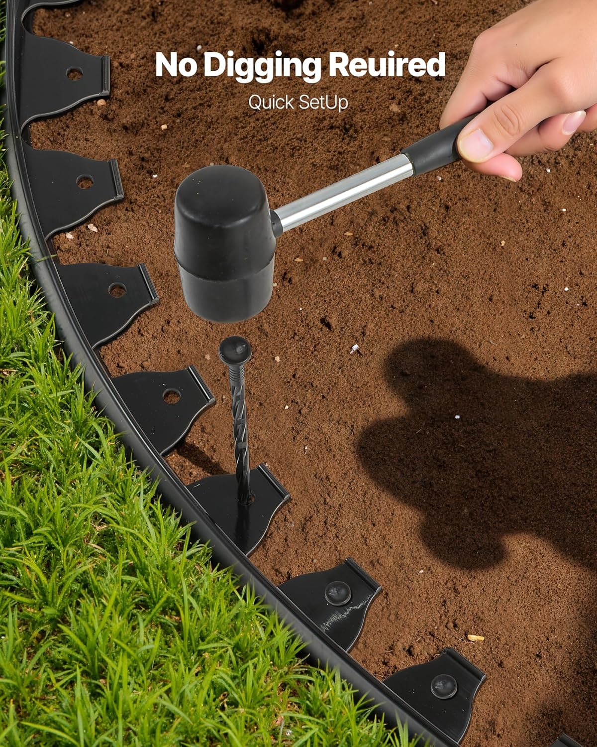 - Easy to Install: Lay the lawn edgings along the bed edge and hammer the included spikes through the holes—no digging or concrete needed. Panels easily overlap for straight or corner placement.