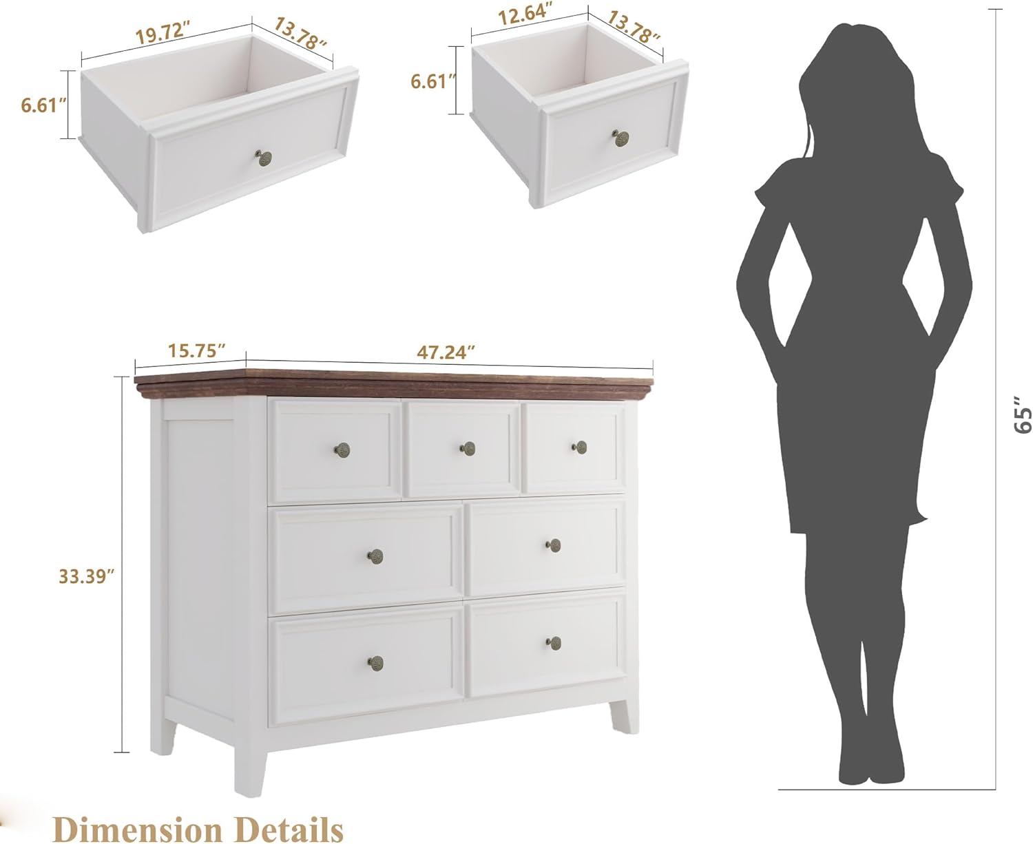 BLANKSPACE 7 Drawer Dresser, Modern Farmhouse Dresser Chest of Drawer for Bedroom, Chest of Drawers Storage Cabinet for Living Room, Entryway, Hallway, Antique White