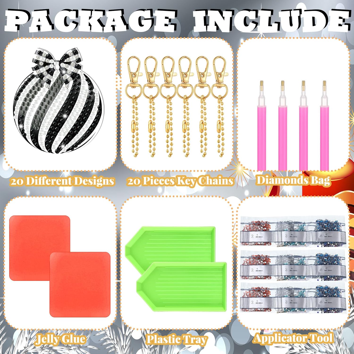 - Easy to Use: our Christmas delicate diamond keychains allow you to hang your keychains securely on your bag or purse, so you don't have to worry about losing them; In addition, trays allow you to arrange diamonds in order, while glue and drill pens help you stick diamonds in the right place