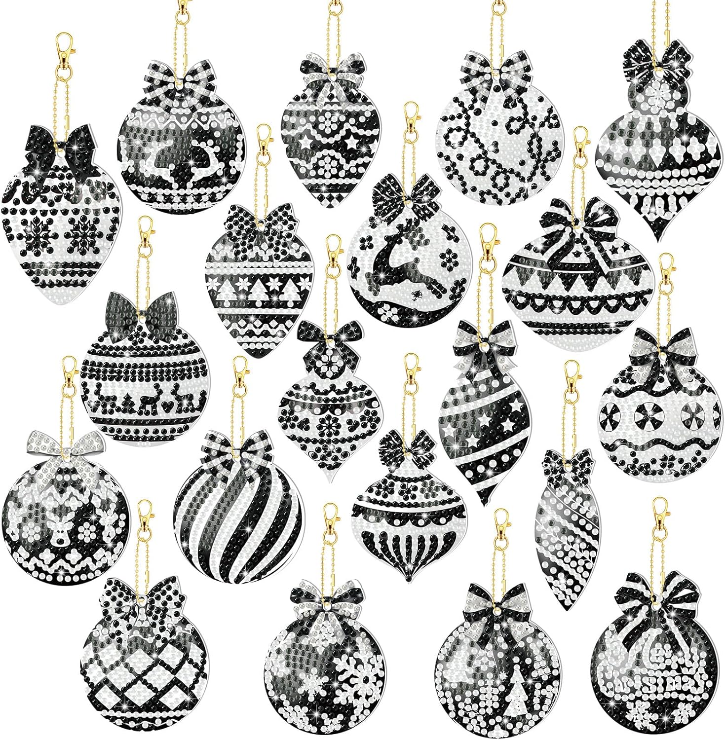 - Package Including: our package contains 20 Christmas black and white balls diamond painting keychains with tools, which are suitable for those who like DIY; Plenty to use for multiple projects or share with friends and family for a fun Christmas break together