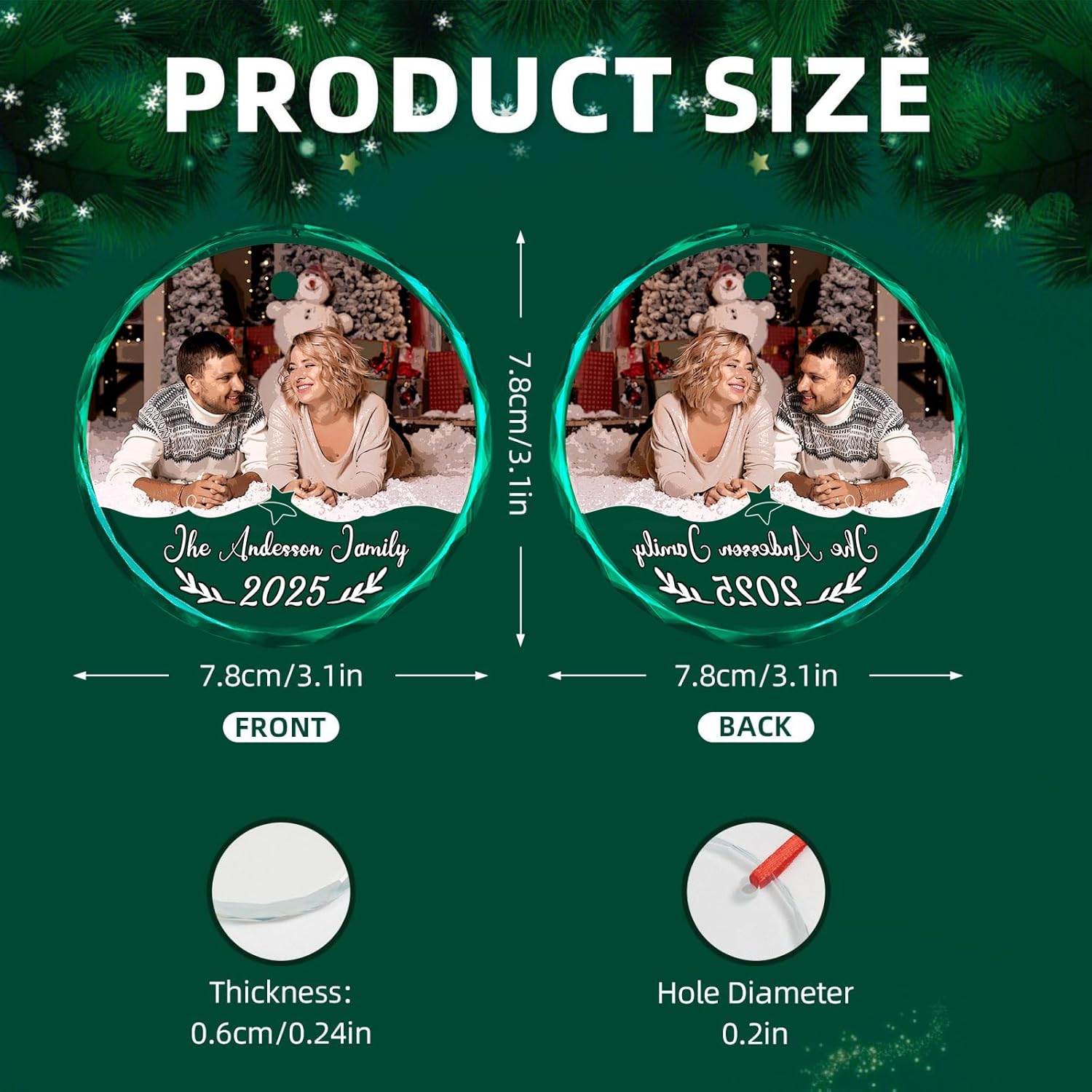 Personalized Christmas Ornaments, Custom Glass Ornament with Photo/Text/Date,Customized Christmas Tree Decor Gifts for Family, Dad, Mom, Him, Her, Couple
