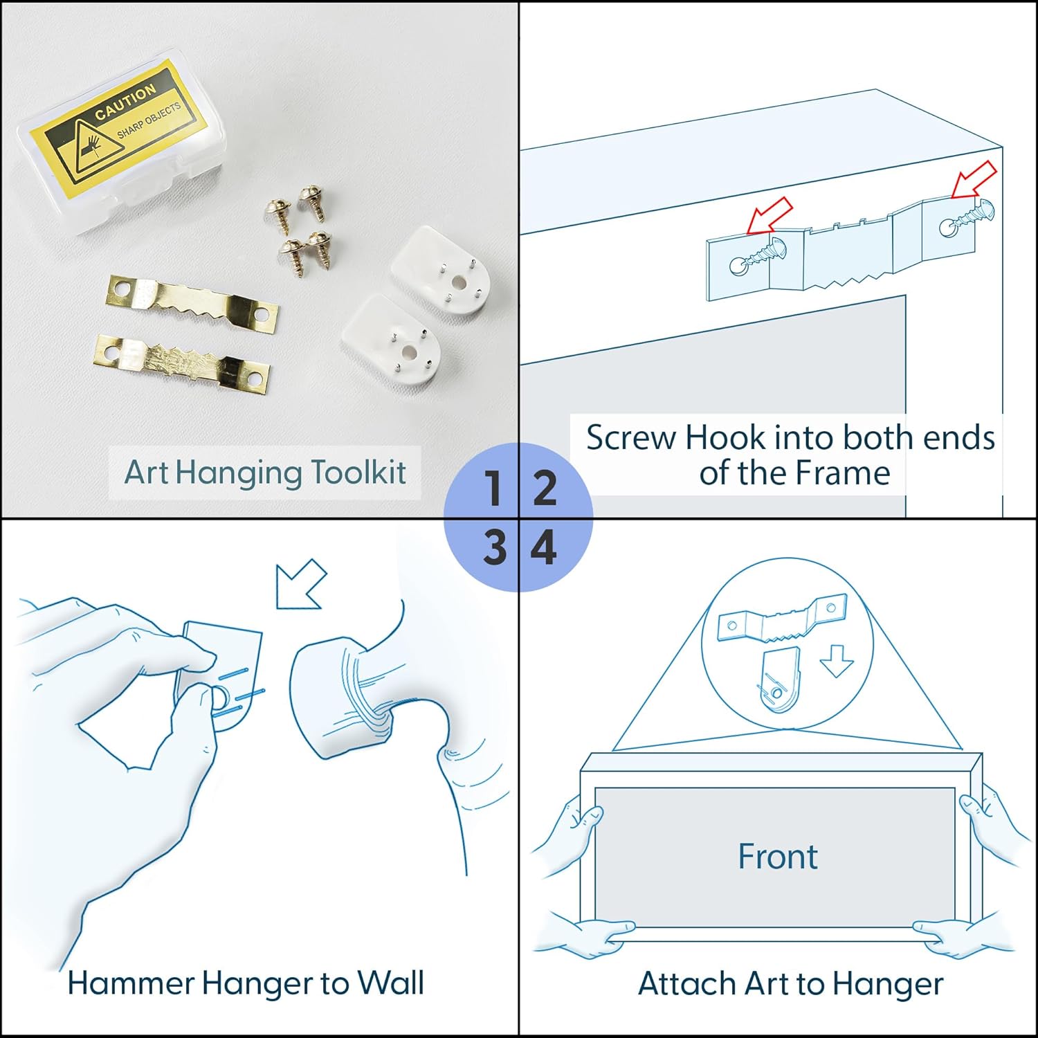 - EASY TO HANG: Every artwork includes a full hanging kit. For best results, place the hook on the side for balanced support. We recommend two people for an easy, accurate setup, ensuring secure and stable hanging.