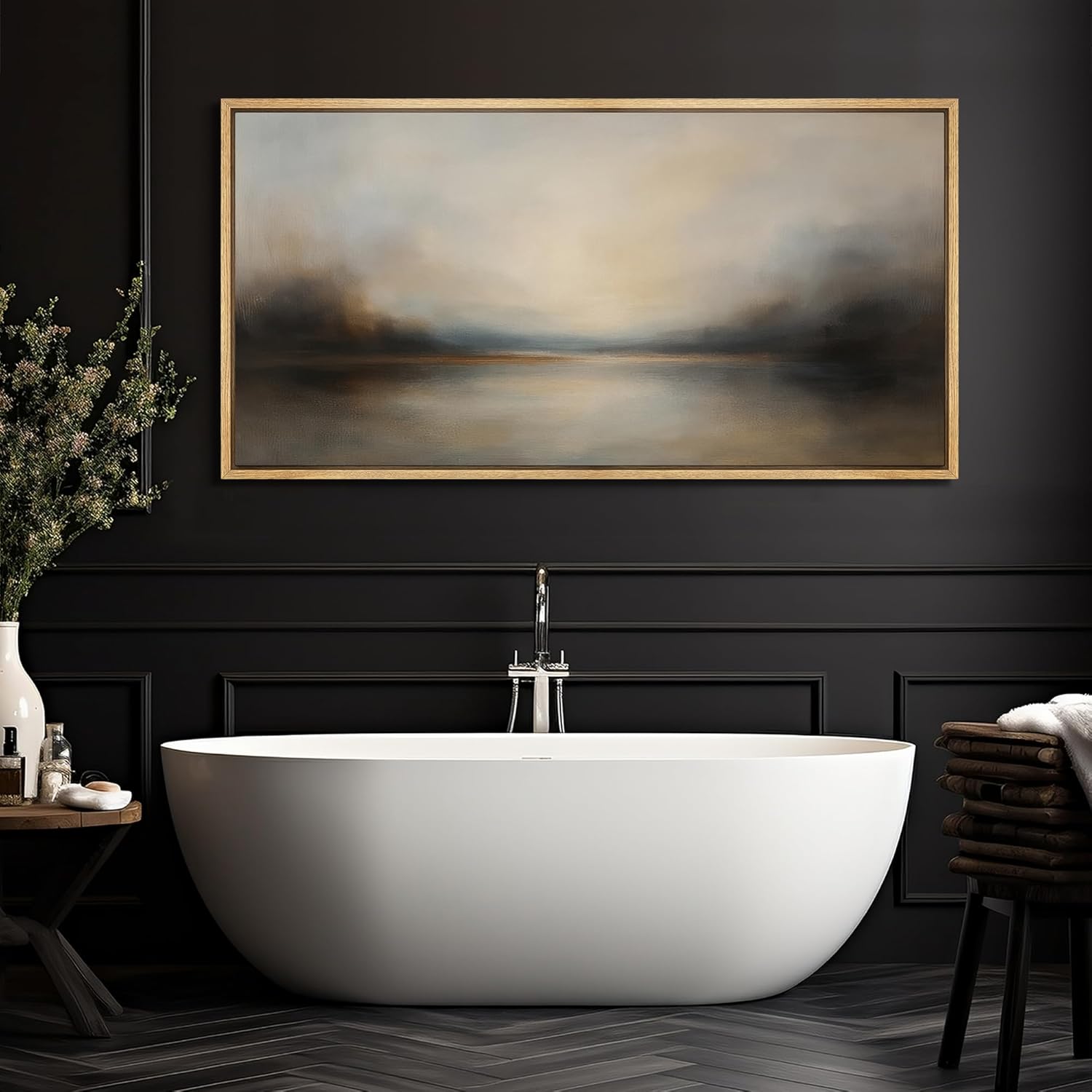 MUDECOR Extra Larg Framed Canvas Print Wall Art Abstract Landscape Neutral Tones Misty Horizon Illustrations Decorative Colorful for Bedroom - 60"x30"