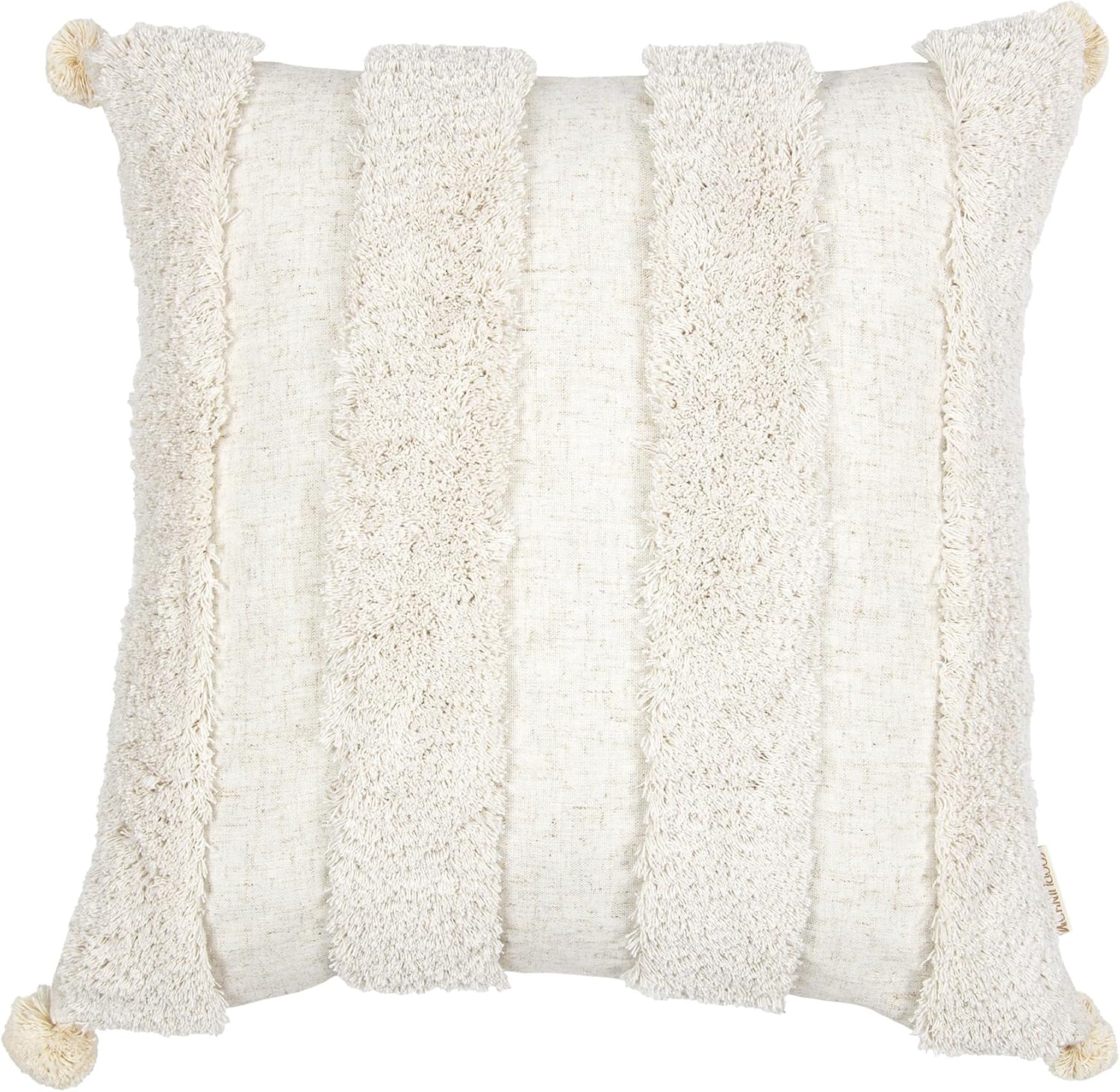 Boho Pillow Covers 18X18 Inch Boho Tufted Linen Throw Pillow Covers Decorative Pompoms Cushion Cover Farmhouse Pillow Case for Couch Sofa Bed Living Room Bedroom,Cream White